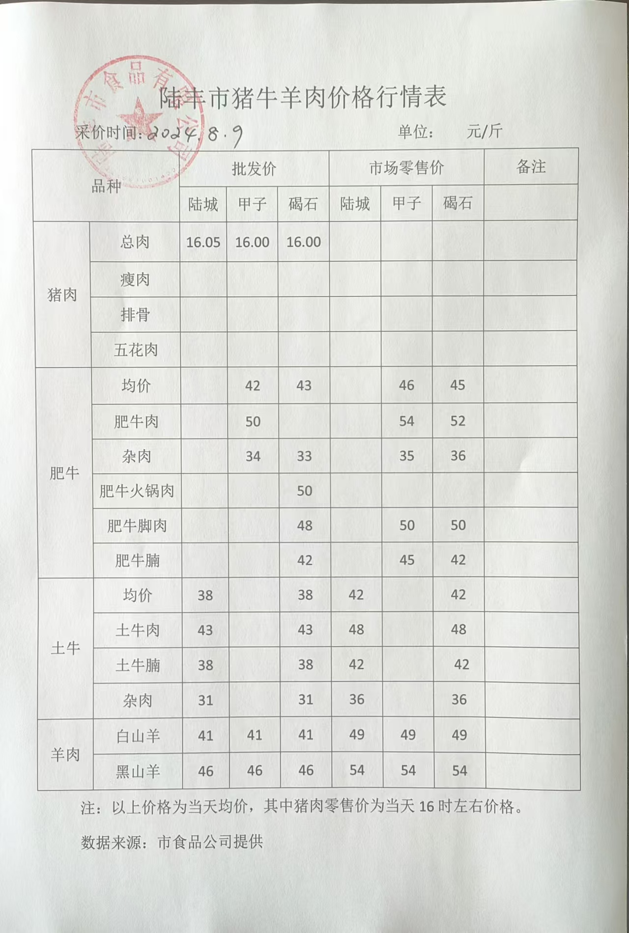 陸豐市豬牛羊肉價(jià)格行情表