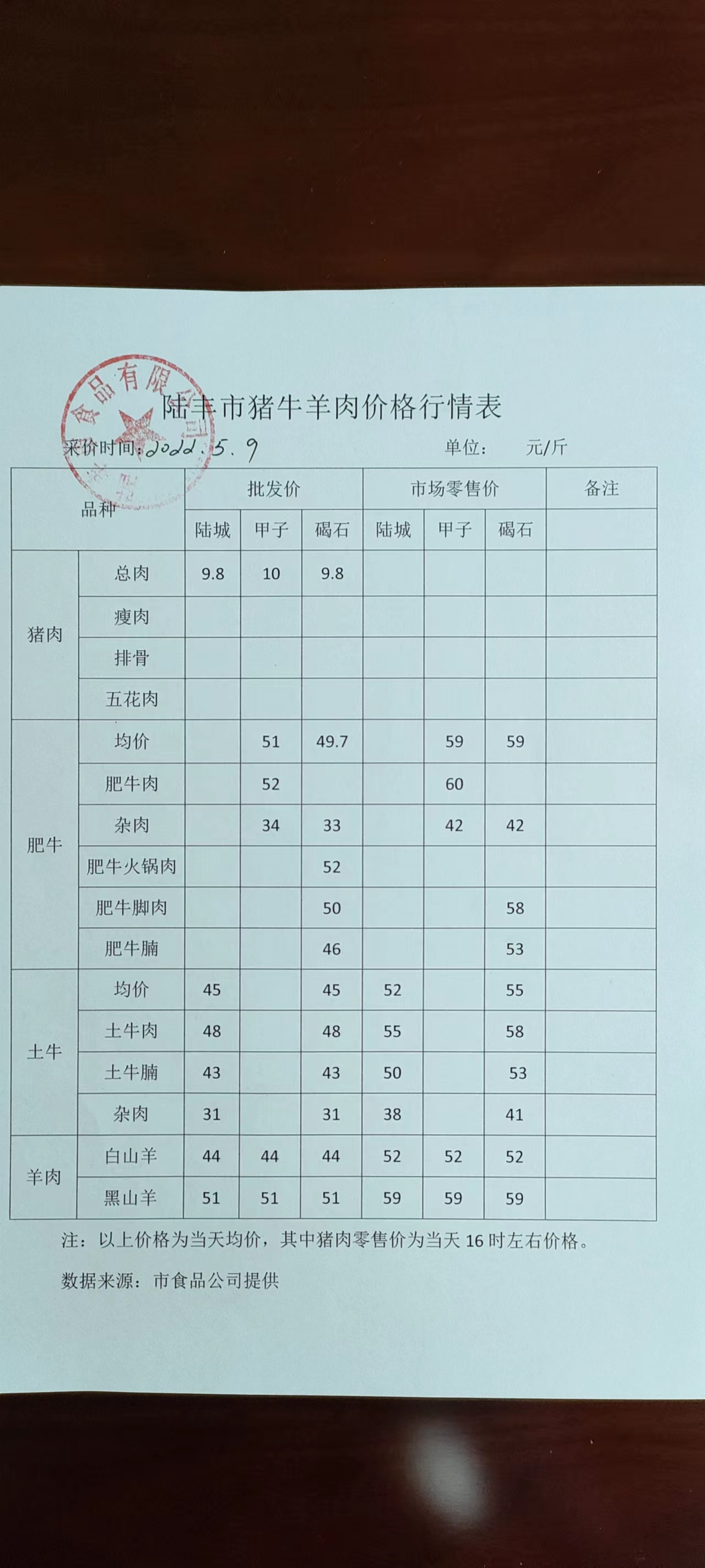 陸豐市豬牛羊肉價格行情表