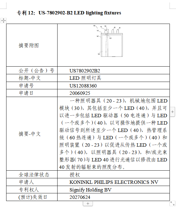 Signify總部位于荷蘭,主要營業(yè)地址位于High Tech Campus 28, 5656 AE Eindhoven, The Netherlands,其美國分公司Signify North America主要營業(yè)地址位于200 Franklin Square Drive, Somerset, New Jersey 08873。Signify的前身是飛利浦公司照明事業(yè)部,2016年,飛利浦照明事業(yè)部獨(dú)立上市,并于2018年由飛利浦照明改名為Signify,但繼續(xù)使用飛利浦作為產(chǎn)品品牌,是全球領(lǐng)先的智能互聯(lián)LED產(chǎn)品、LED照明控制系統(tǒng)和服務(wù)廠商。Signify擁有近2萬項(xiàng)專利,覆蓋了LED照明產(chǎn)業(yè)鏈絕大部分技術(shù)分支,涵蓋燈具結(jié)構(gòu)、調(diào)光調(diào)色、驅(qū)動(dòng)器、控制器、照明系統(tǒng)和通信協(xié)議等。此外,Signify基于其專利布局,于2008年推出了專利許可計(jì)劃EnabLED,提供5000余項(xiàng)授權(quán)專利,目前被許可人達(dá)到1500余名,包含百余家中國企業(yè)。