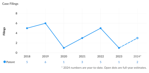 根據(jù)統(tǒng)計(jì)數(shù)據(jù),原告在美國共涉及23起專利侵權(quán)訴訟,全部為主動(dòng)發(fā)起。從訴訟趨勢(shì)上看,原告自2018年以來每年均發(fā)起訴訟,訴訟趨勢(shì)處于上升階段。