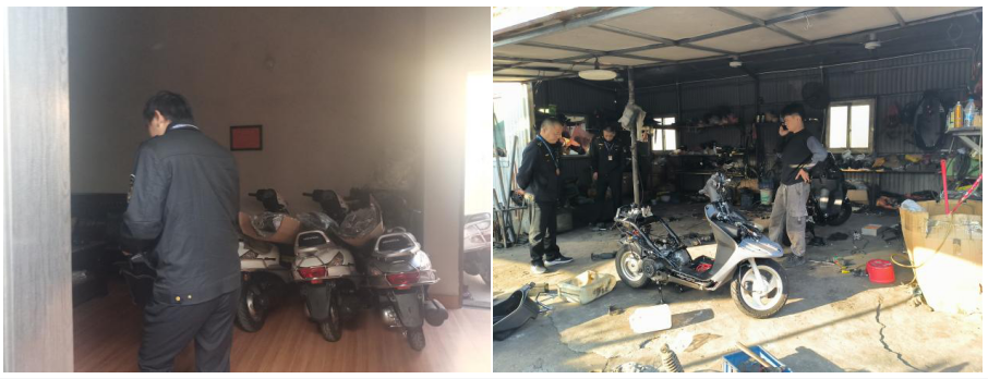 通過前期摸排,我局聯(lián)合碣北派出所,在陸豐市碣石鎮(zhèn)戴厝村委許厝村,搗毀非法組拼裝摩托車窩點(diǎn)1個(gè),非法加工假冒商標(biāo)標(biāo)志摩托車配件窩點(diǎn)1個(gè)?,F(xiàn)場查獲半成品摩托車3輛,報(bào)廢摩托車2截,假冒品牌摩托車外殼一批,控制現(xiàn)場當(dāng)事人2人。