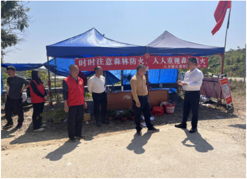 清明節(jié)期間為切實(shí)抓好協(xié)助持駐鎮(zhèn)森林防火工作,保障人民群眾生命財(cái)產(chǎn)安全。3月23日,市市場(chǎng)監(jiān)管局黨組書(shū)記、局長(zhǎng)黃海波帶隊(duì)前往協(xié)助掛駐的八萬(wàn)鎮(zhèn)石溪點(diǎn)、秋冬尾與石溪交界點(diǎn)、吉水點(diǎn)三個(gè)森林防火執(zhí)勤點(diǎn)進(jìn)行實(shí)地督導(dǎo),與鎮(zhèn)、村干部一道打響森林防火“清明節(jié)戰(zhàn)役”。