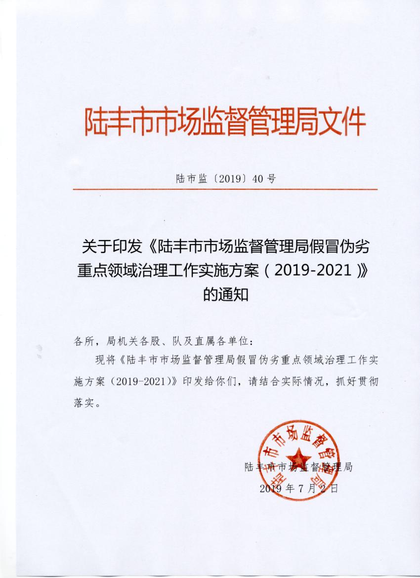 關(guān)于印發(fā)《陸豐市市場(chǎng)監(jiān)督管理局假冒偽劣重點(diǎn)領(lǐng)域治理工作實(shí)施方案(2019-2021)》的通知