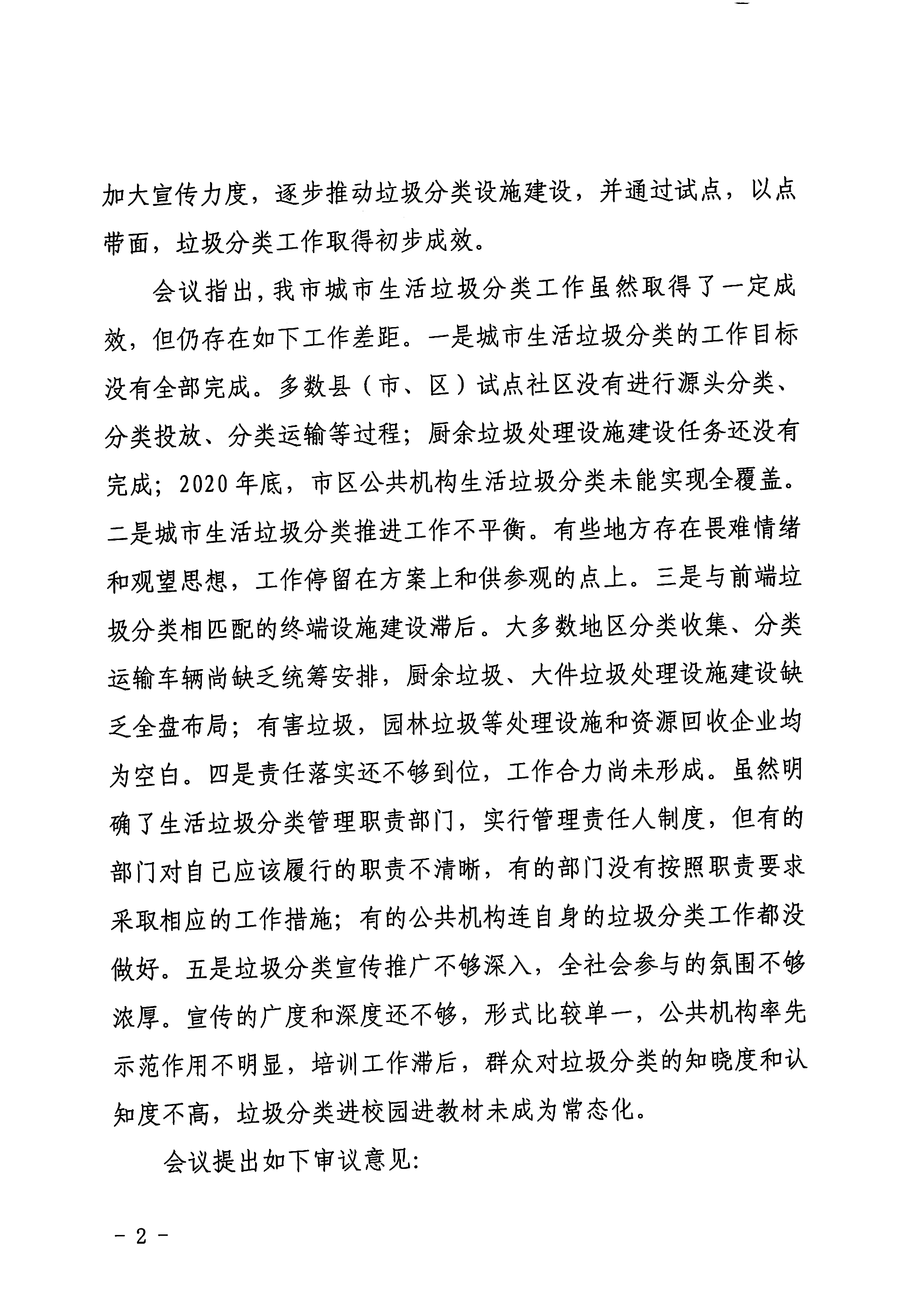 市七屆人大常委會第四十三次會議對市人民政府關(guān)于我市城市生活垃圾分類工作推進(jìn)情況報告的審議意見