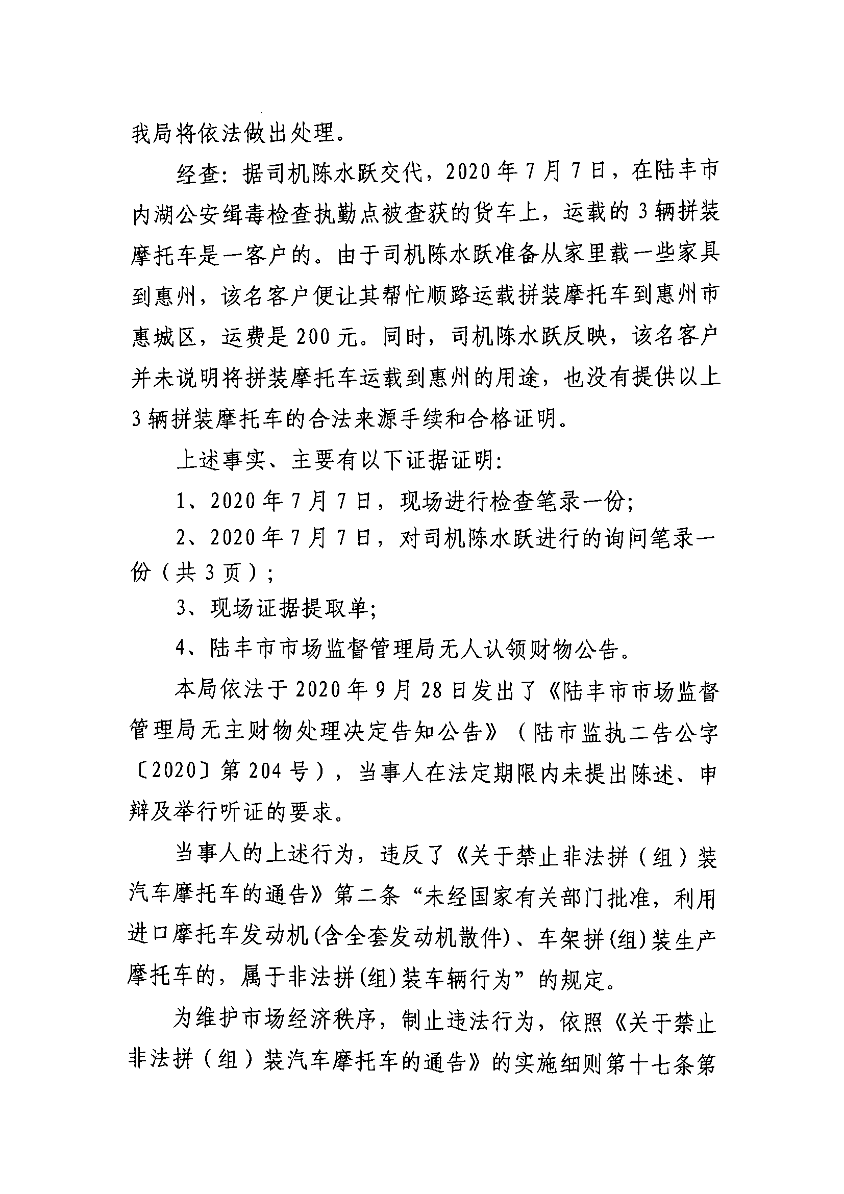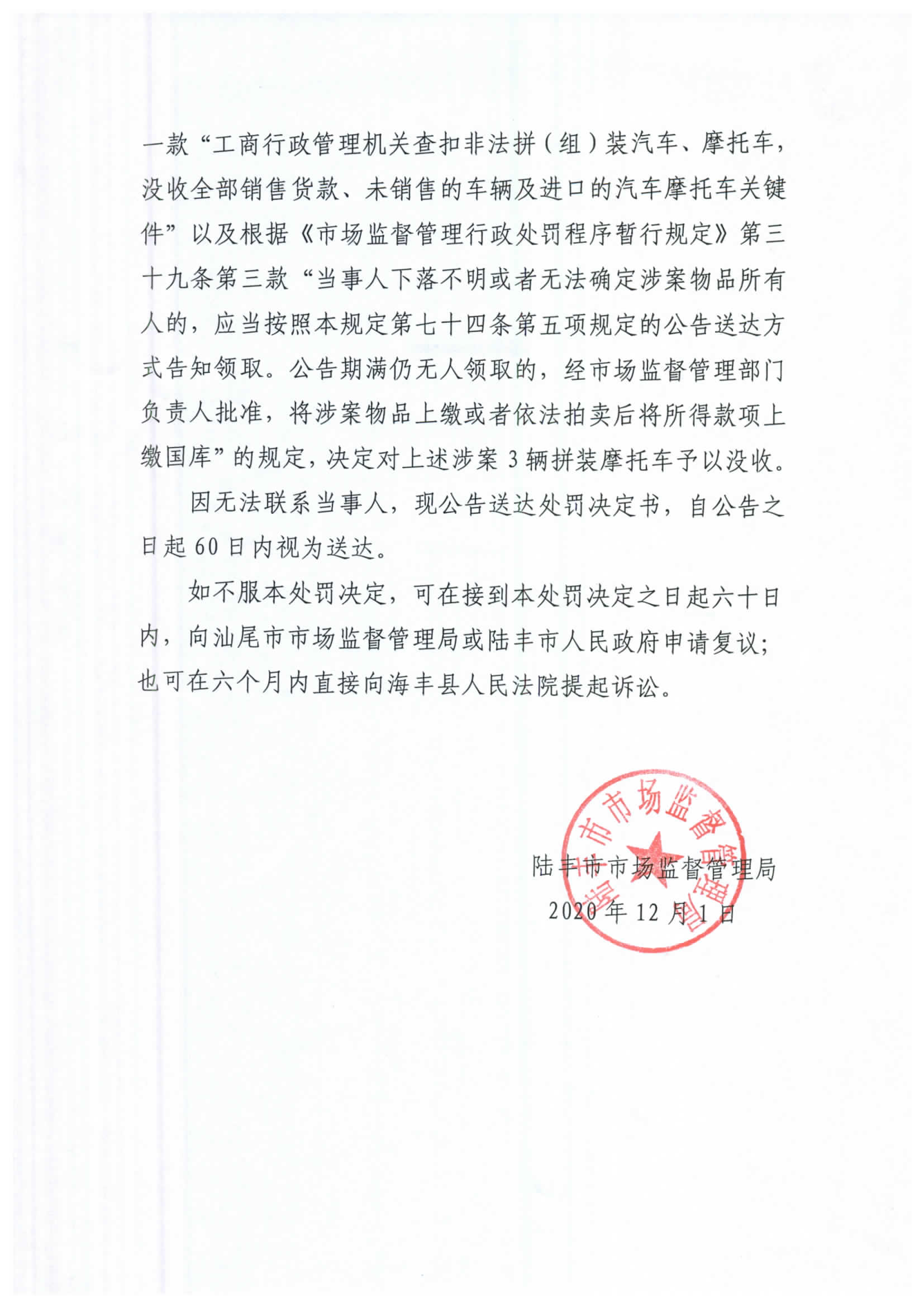 陸豐市市場(chǎng)監(jiān)督管理局無(wú)人認(rèn)領(lǐng)財(cái)物處理決定公告