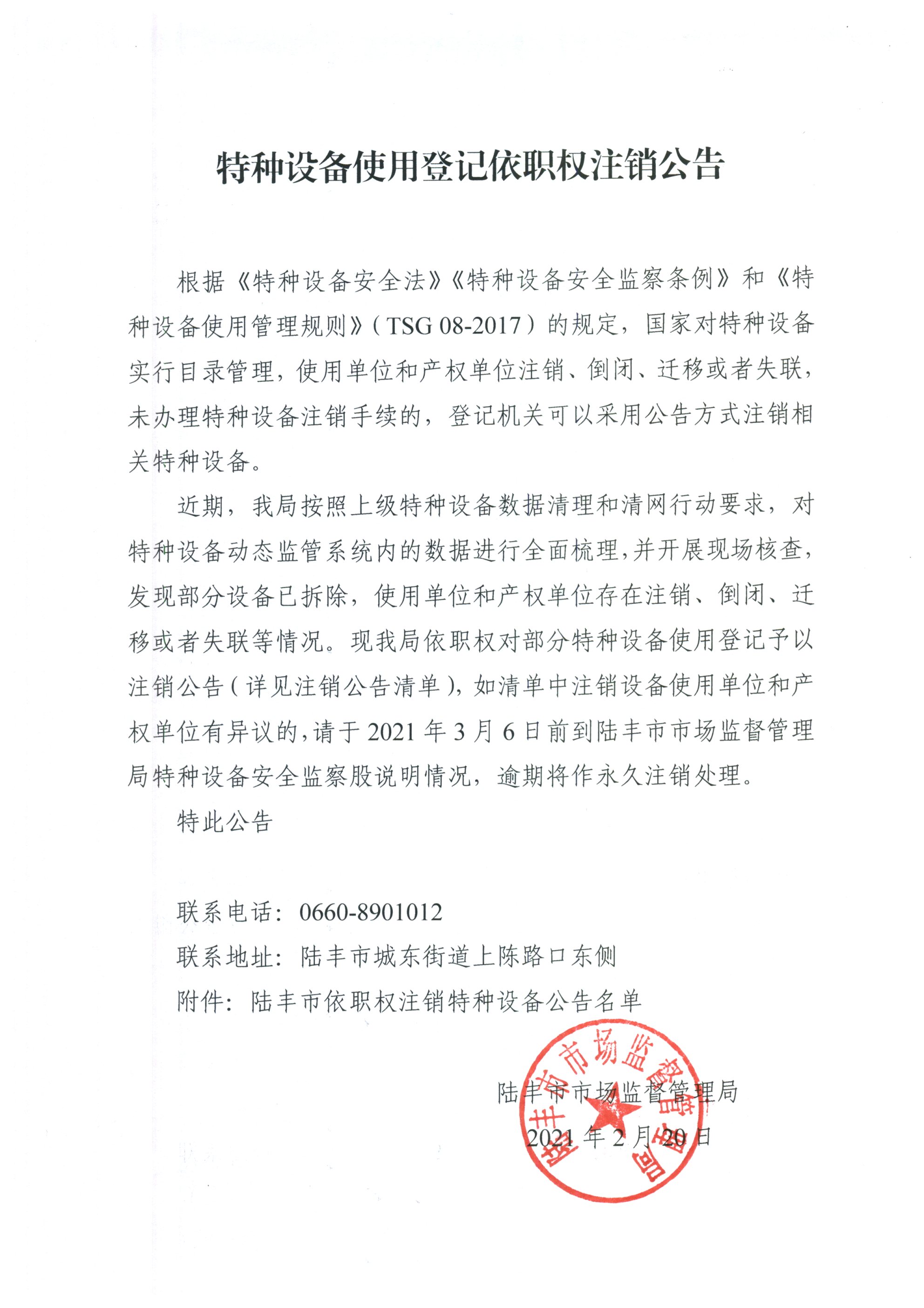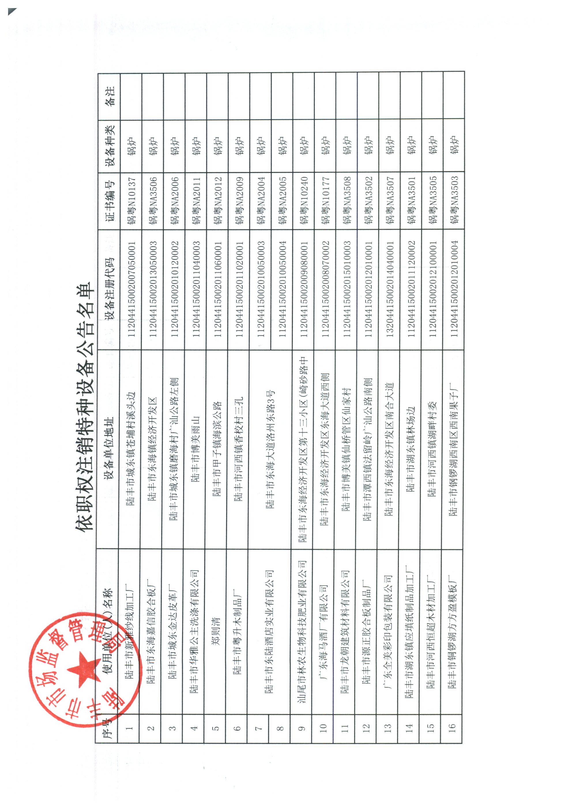 特種設(shè)備使用登記依職權(quán)注銷公告