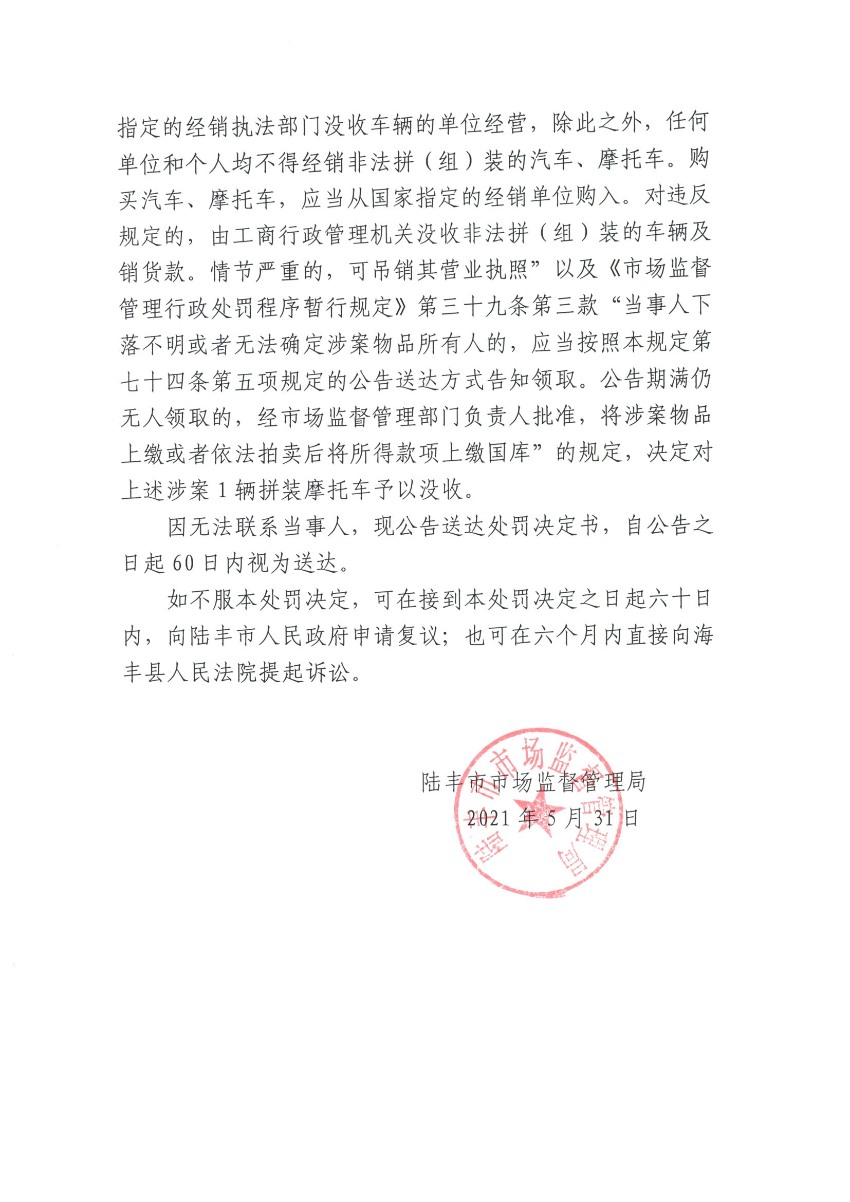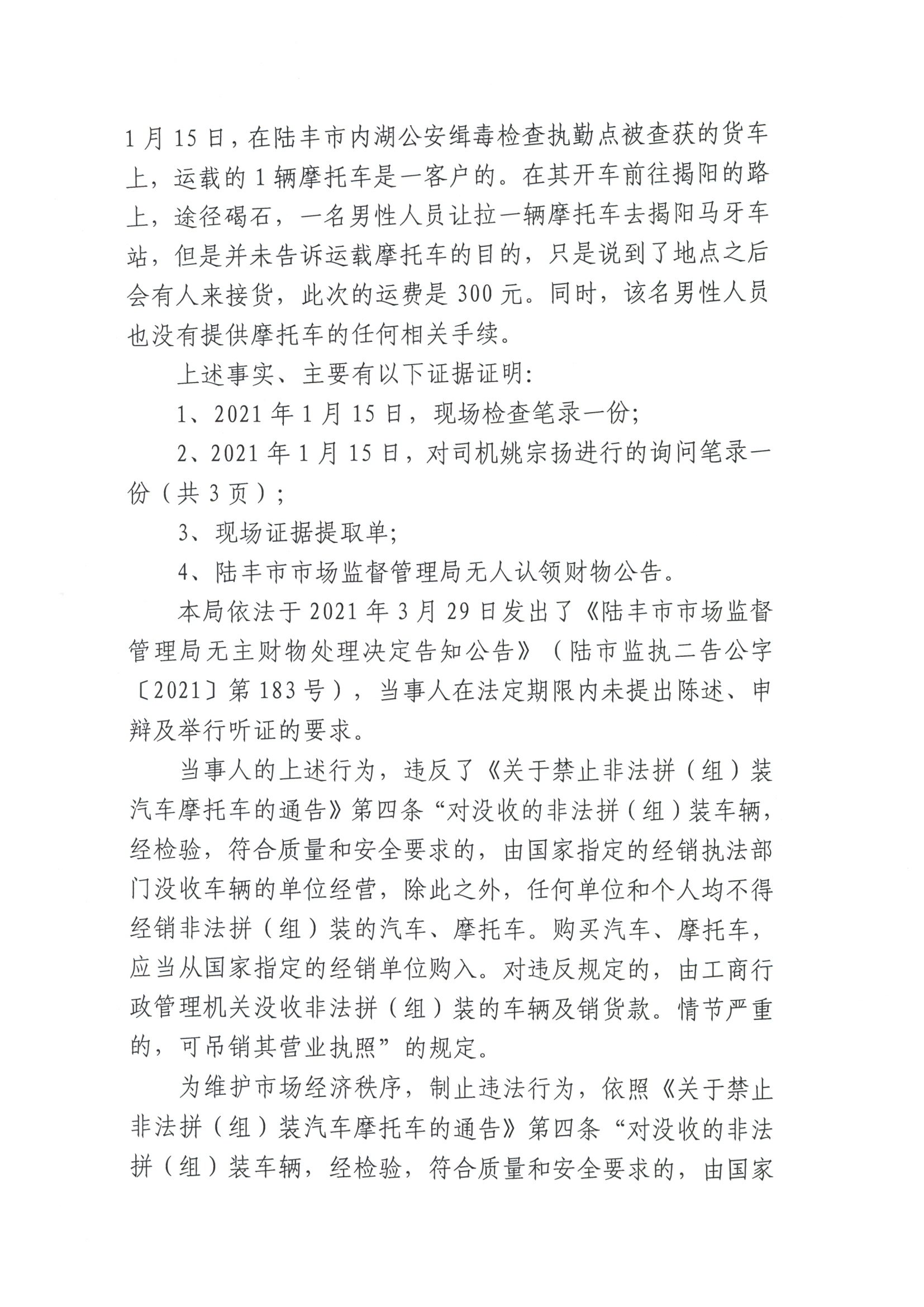 陸豐市市場監(jiān)督管理局無人認領(lǐng)財物處理決定公告