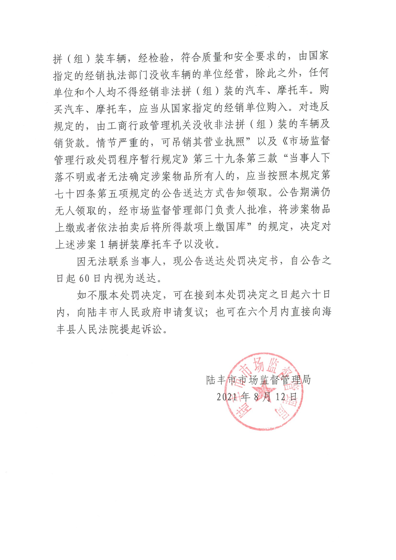 陸豐市市場(chǎng)監(jiān)督管理局無人認(rèn)領(lǐng)財(cái)物處理決定公告