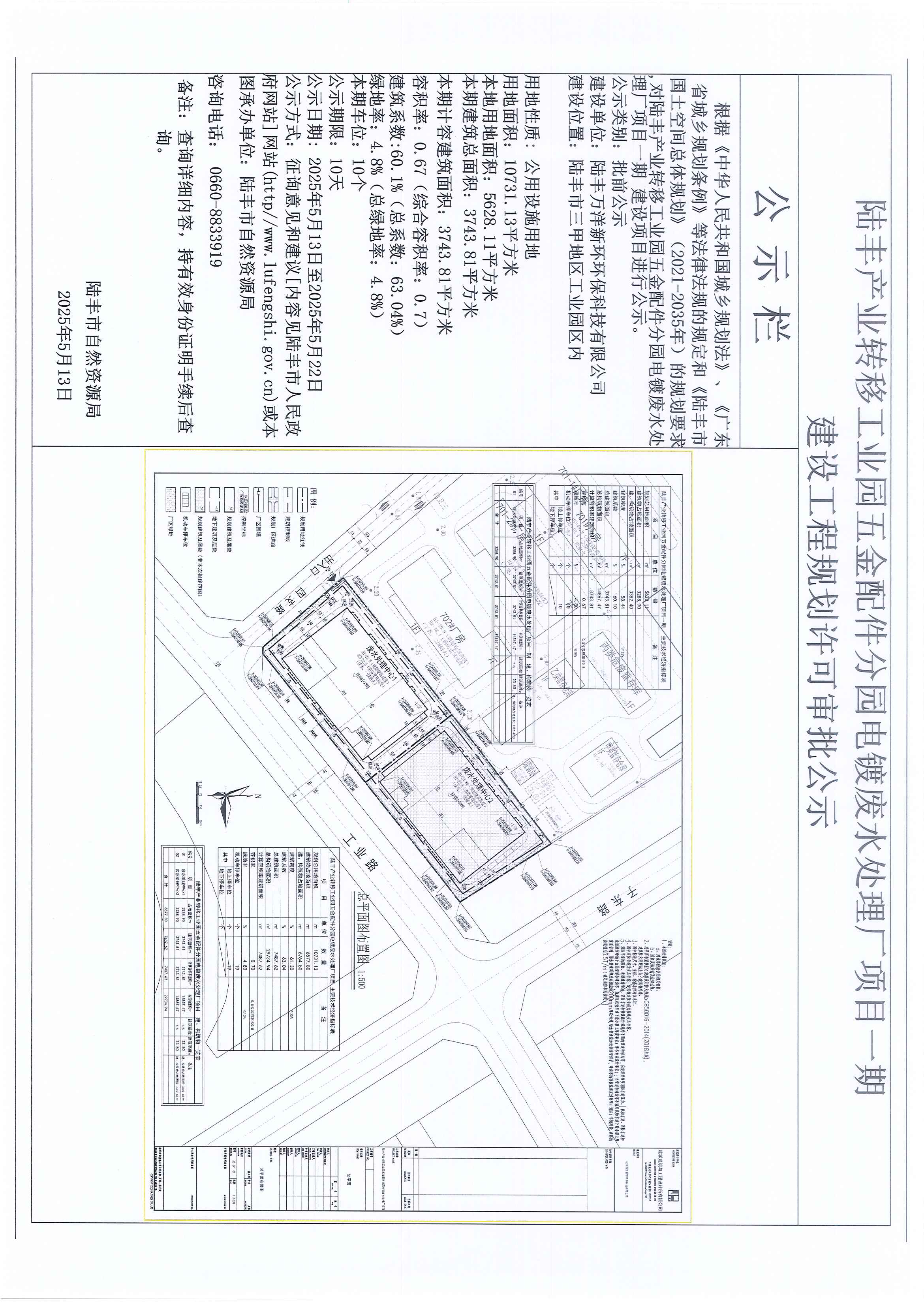 陸豐產(chǎn)業(yè)轉(zhuǎn)移工業(yè)園五金配件分園電鍍廢水處理廠項目一期建設工程規(guī)劃許可審批公示