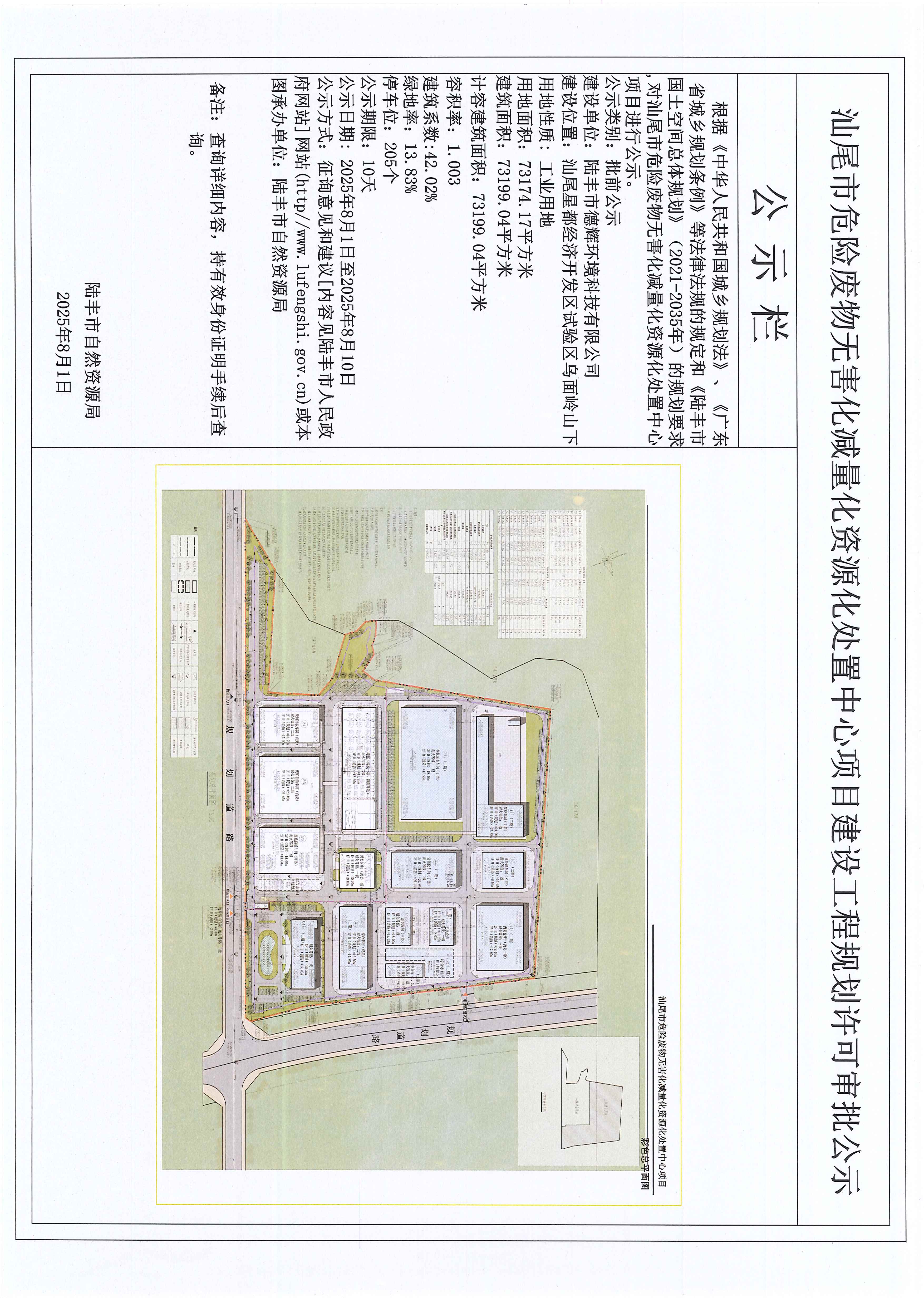 汕尾市危險廢物無害化減量化資源化處置中心項目建設工程規(guī)劃許可審批公示