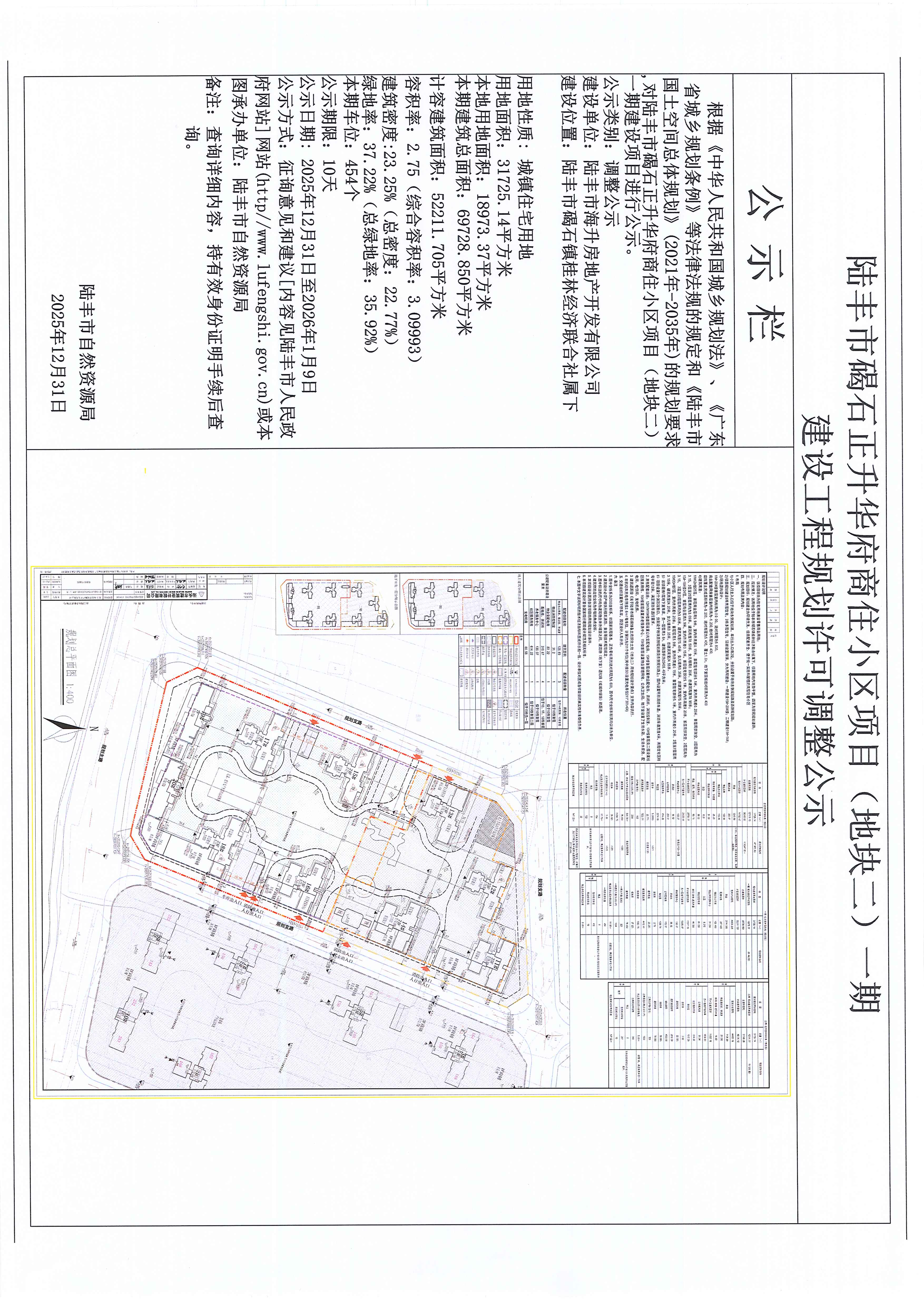 陸豐市碣石正升華府商住小區(qū)項目(地塊二)一期建設(shè)工程規(guī)劃許可調(diào)整公示