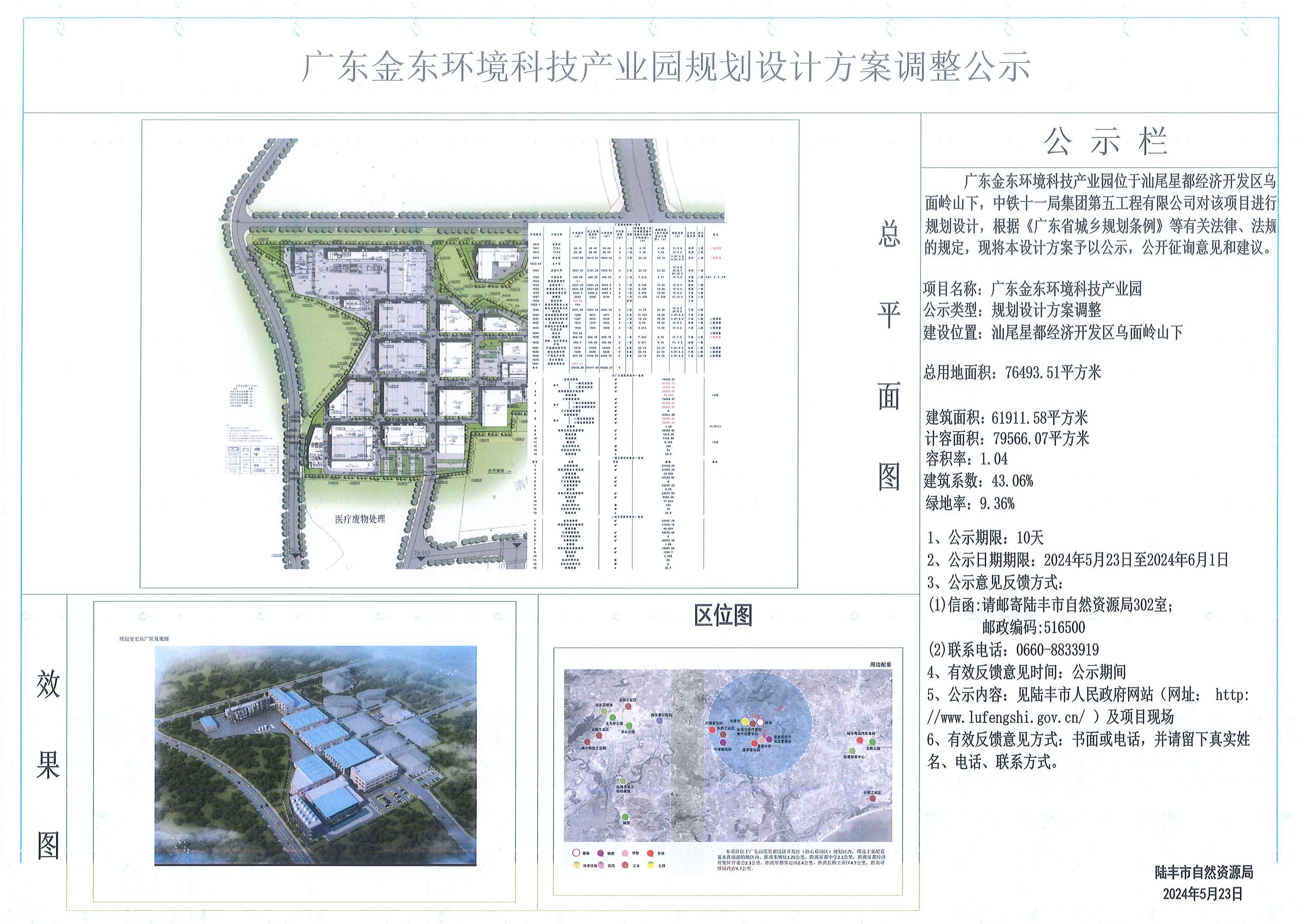 廣東金東環(huán)境科技產(chǎn)業(yè)園規(guī)劃設(shè)計方案調(diào)整公示