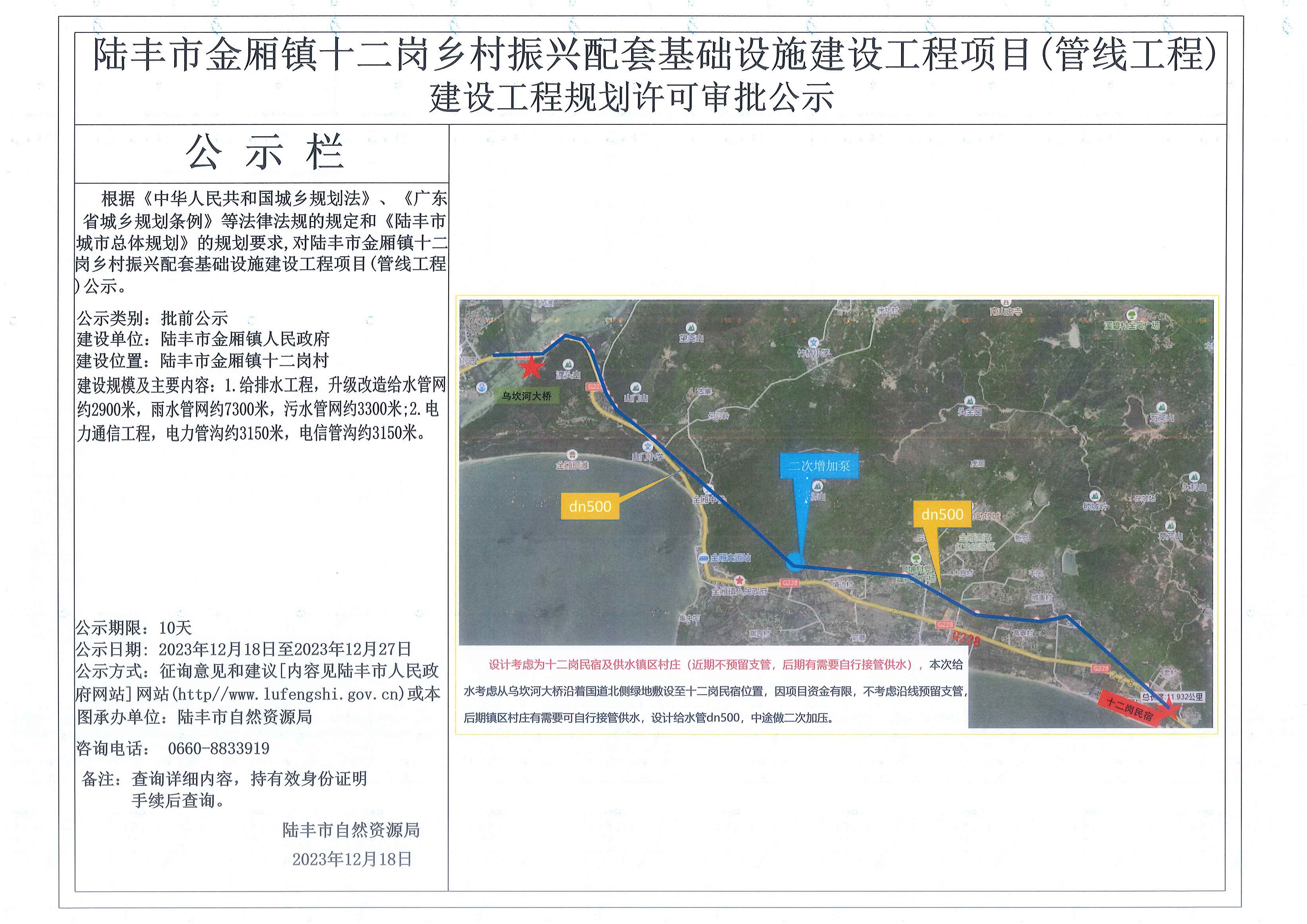 陸豐市金廂鎮(zhèn)十二崗鄉(xiāng)村振興配套基礎(chǔ)設(shè)施建設(shè)工程項目(管線工程)建設(shè)工程規(guī)劃許可審批公示