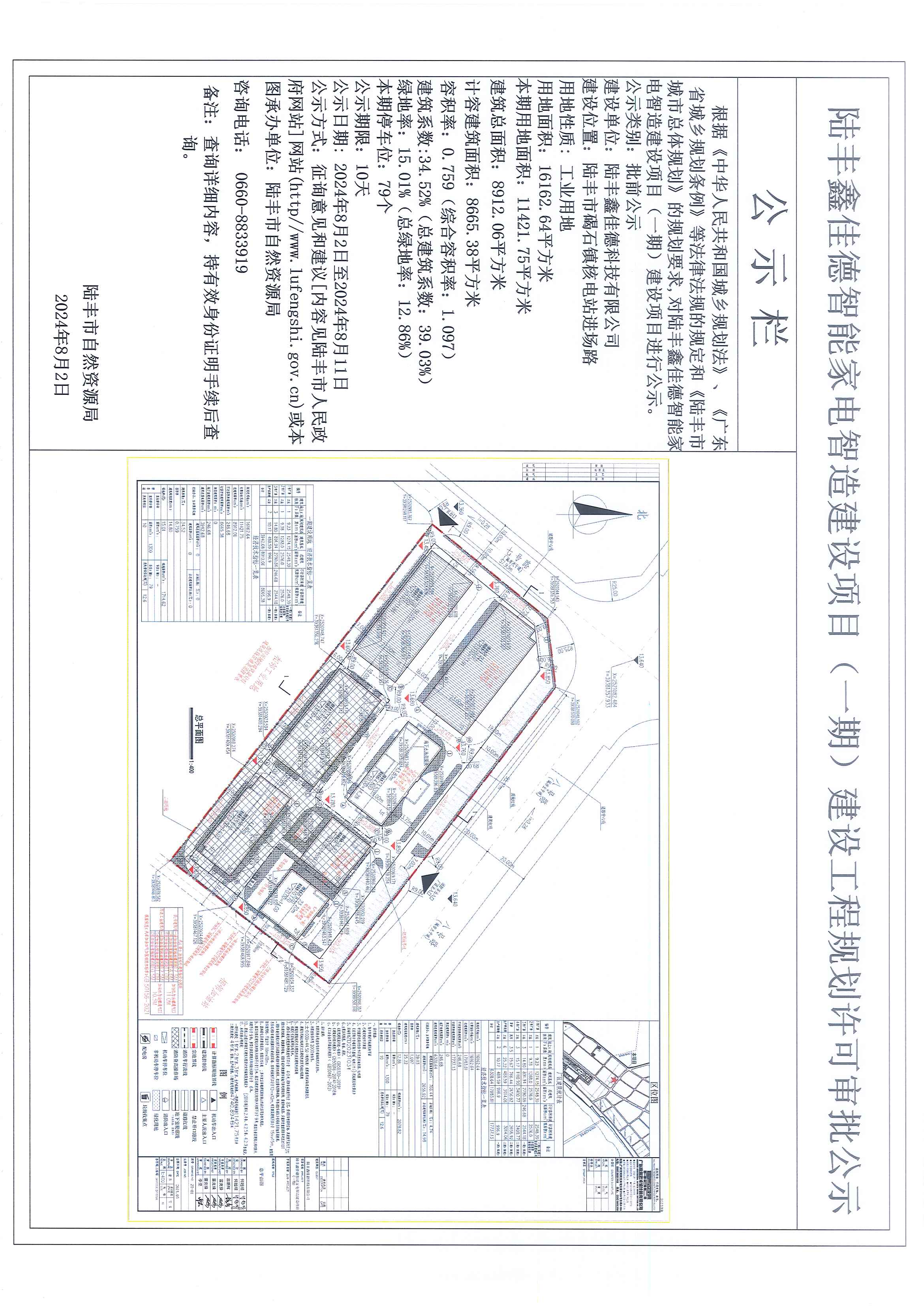陸豐鑫佳德智能家電智造建設(shè)項(xiàng)目(一期)建設(shè)工程規(guī)劃許可審批公示