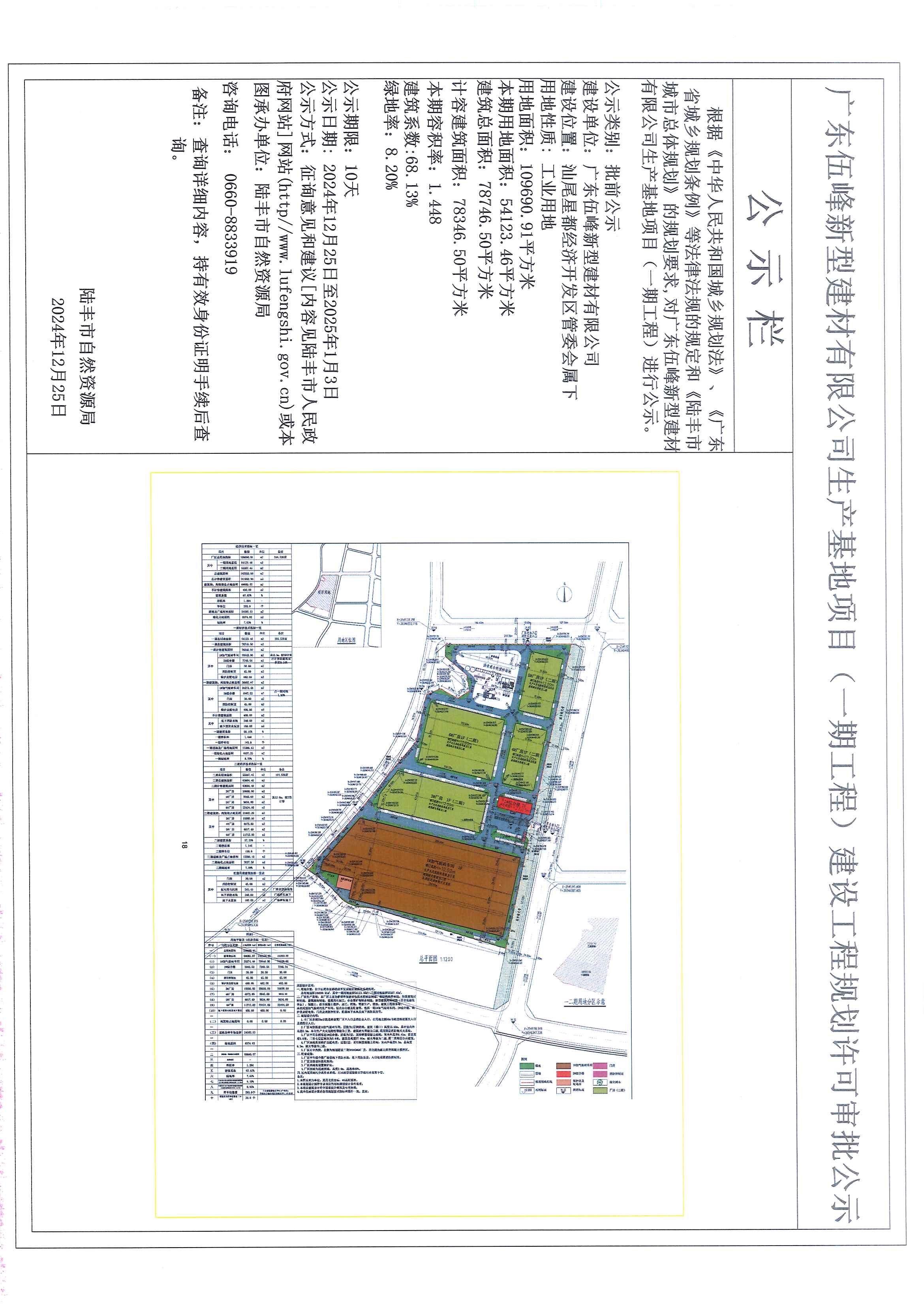 廣東伍峰新型建材有限公司生產(chǎn)基地項(xiàng)目(一期工程)建設(shè)工程規(guī)劃許可審批公示