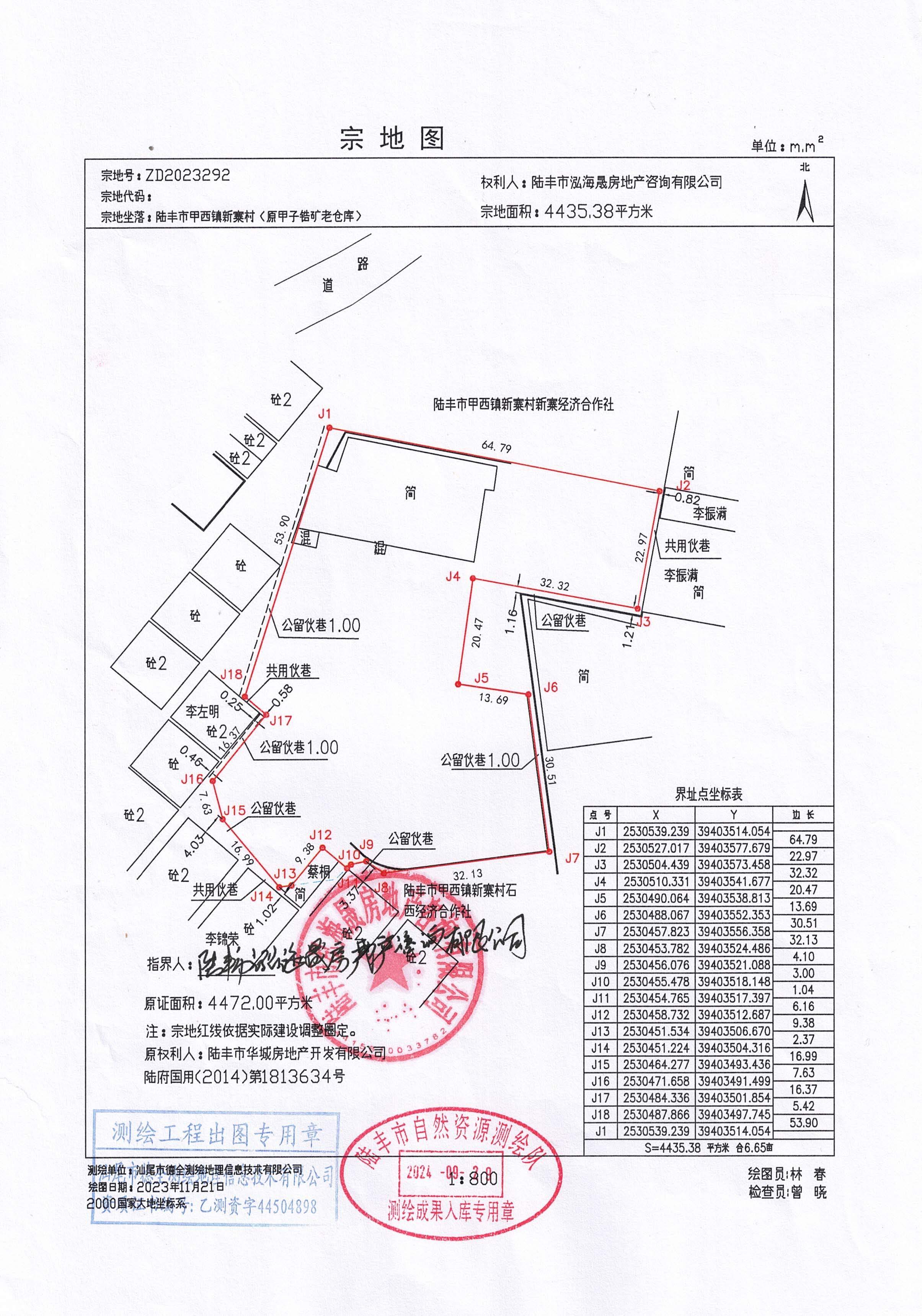陸豐市華城房地產(chǎn)開(kāi)發(fā)有限公司 | 國(guó)有建設(shè)用地使用權(quán) | 陸豐市甲西鎮(zhèn)新寨村(原甲子鋯礦老倉(cāng)庫(kù)) | 東:至公用伙巷;南:西段至巷道、中至蔡桐土地交界、東段至新寨村石西經(jīng)濟(jì)合作社土地交界;西至公用伙巷;北至陸豐市甲西鎮(zhèn)新寨村新寨經(jīng)濟(jì)合作社土地交界 | 4472.00㎡ | 倉(cāng)儲(chǔ)用地 | 附:宗地圖、界 址 簽 章 表 |