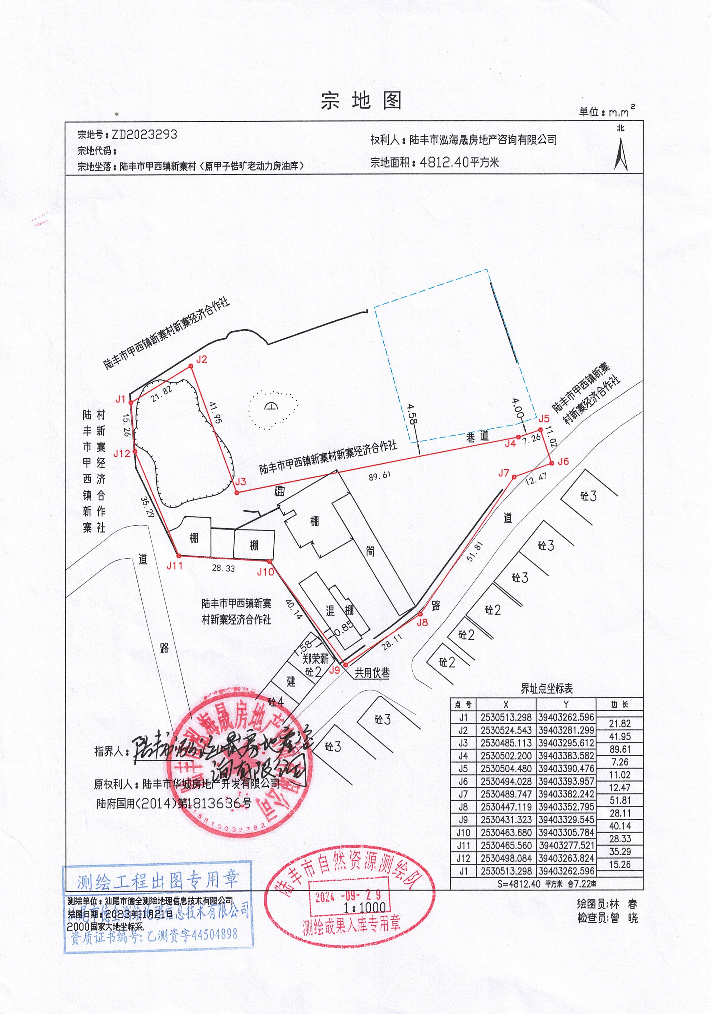 陸豐市華城房地產(chǎn)開(kāi)發(fā)有限公司 | 國(guó)有建設(shè)用地使用權(quán) | 陸豐市甲西鎮(zhèn)新寨村(原甲子鋯礦老動(dòng)力房油庫(kù)) | 東至陸豐市甲西鎮(zhèn)新寨村新寨經(jīng)濟(jì)合作社土地交界;南至道路;西至陸豐市甲西鎮(zhèn)新寨村新寨經(jīng)濟(jì)合作社土地交界、鄭榮薪共用伙巷;北: 西中段至陸豐市甲西鎮(zhèn)新寨村新寨經(jīng)濟(jì)合作社土地交界、東段至巷道 | 4812.40㎡ | 倉(cāng)儲(chǔ)用地 | 附:宗地圖、界 址 簽 章 表 |