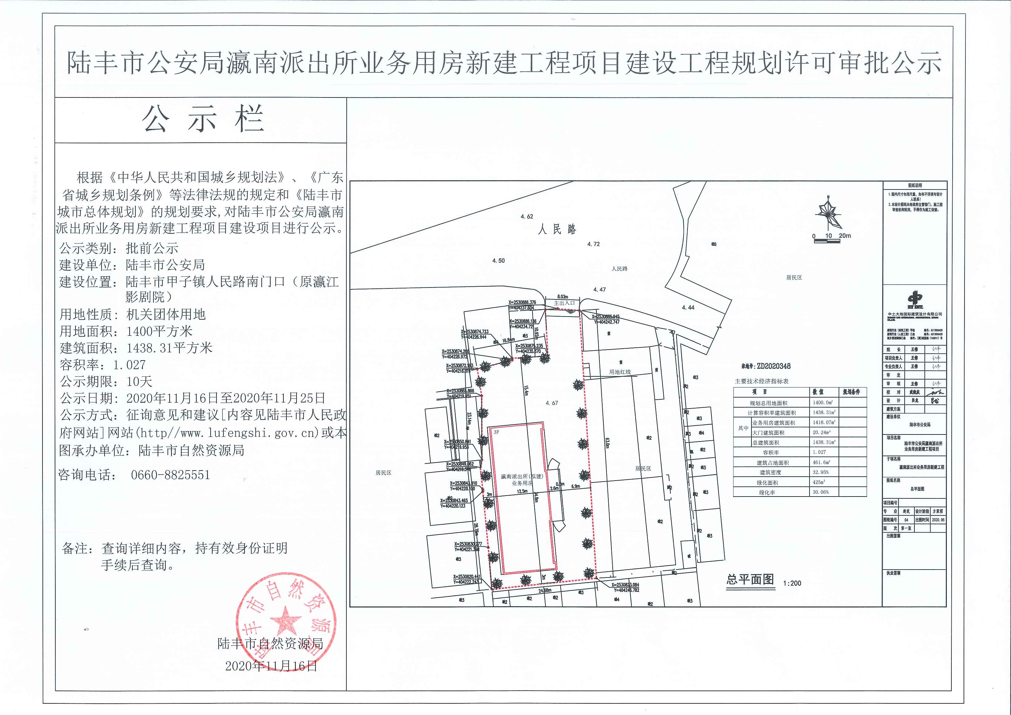 陸豐市公安局灜南派出所業(yè)務(wù)用房新建工程項(xiàng)目建設(shè)工程規(guī)劃許可審批公示