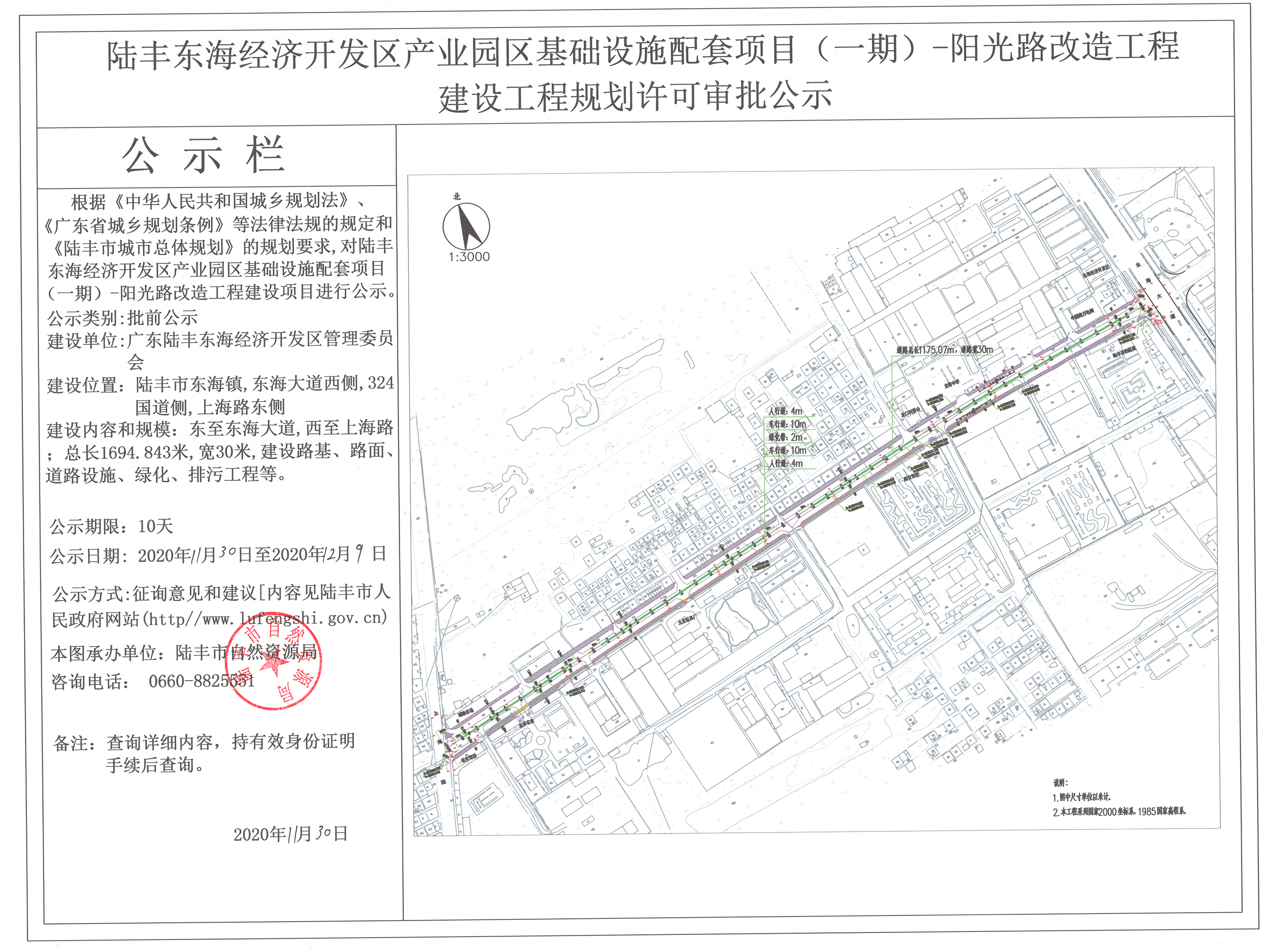 陸豐東海經(jīng)濟(jì)開發(fā)區(qū)產(chǎn)業(yè)園區(qū)基礎(chǔ)設(shè)施配套項(xiàng)目(一期)-陽光路改造工程建設(shè)工程規(guī)劃許可審批公示