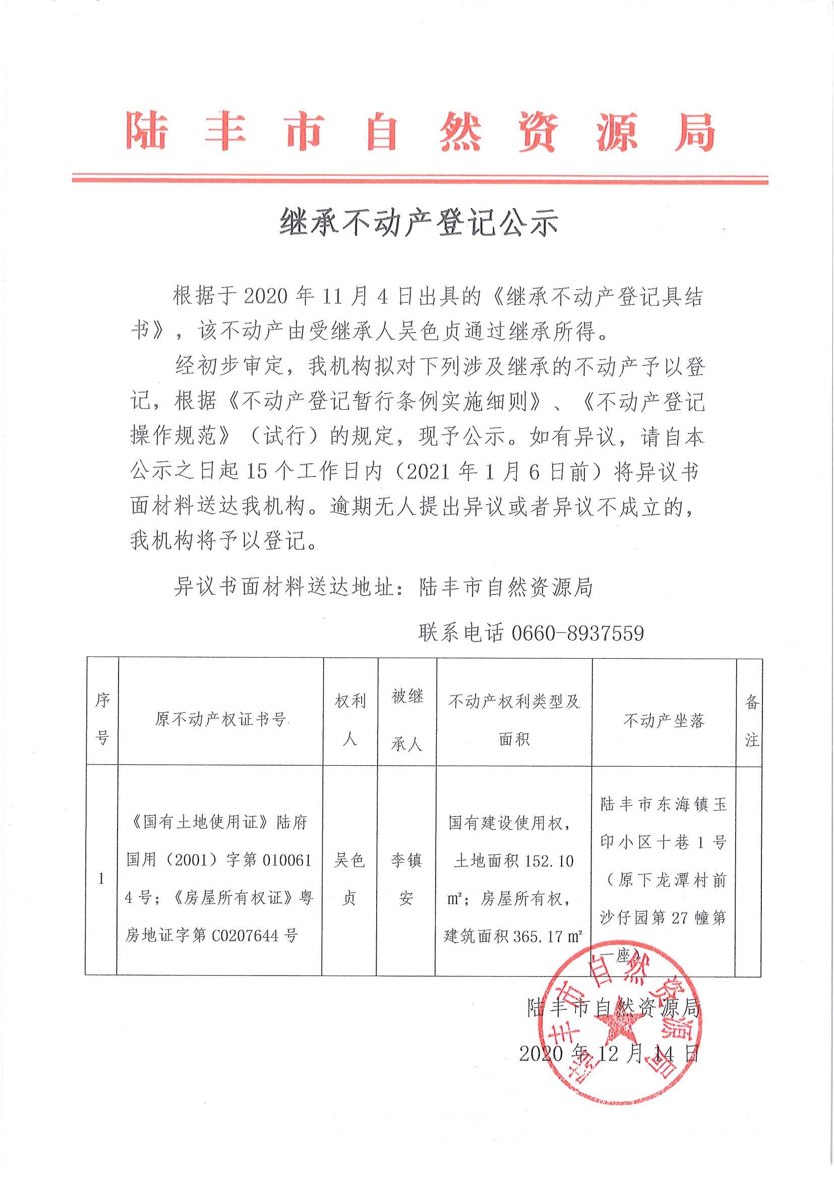 繼承不動(dòng)產(chǎn)登記公示(吳色貞)