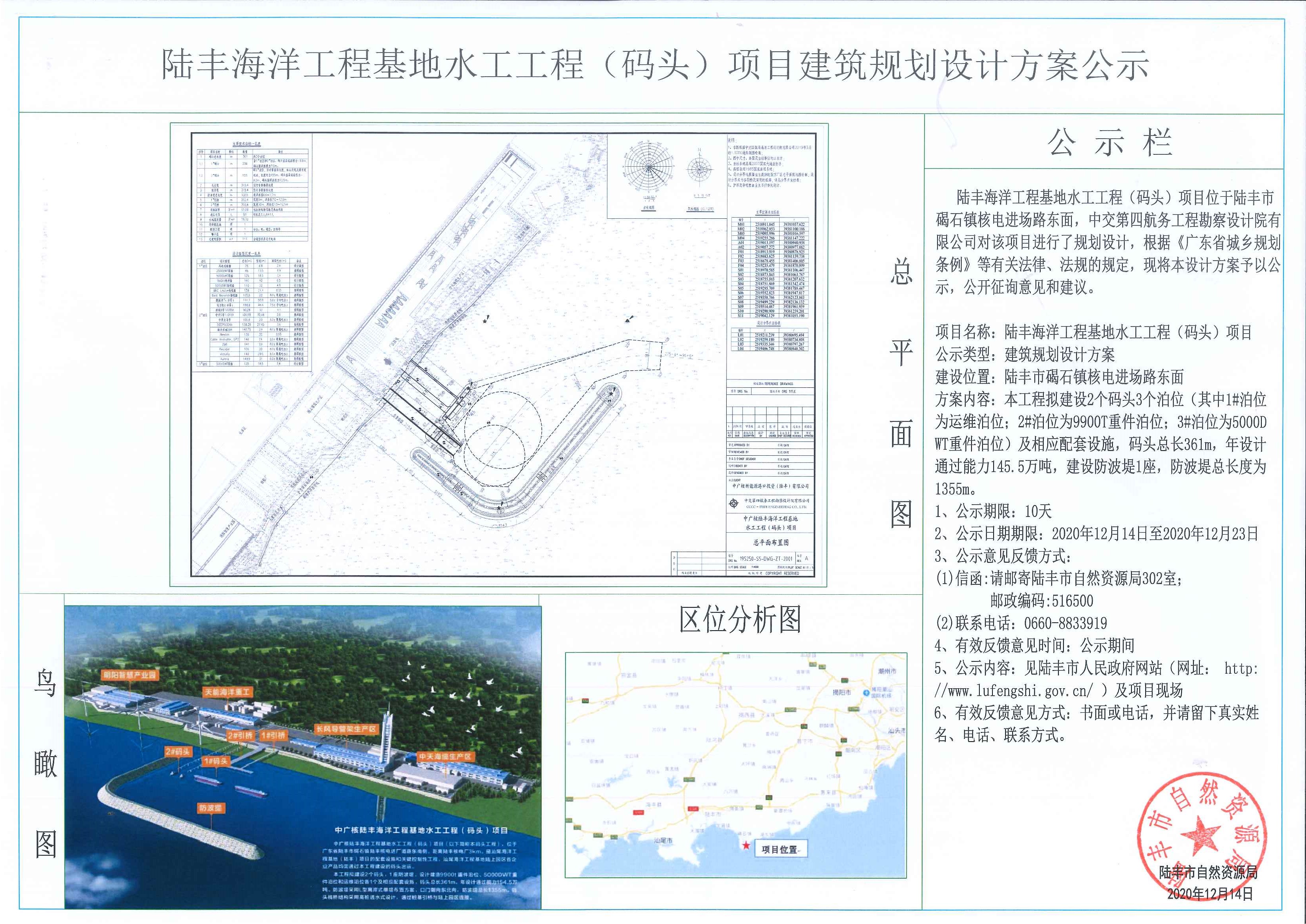 陸豐海洋工程基地水工工程(碼頭)項(xiàng)目建筑規(guī)劃設(shè)計(jì)方案公示