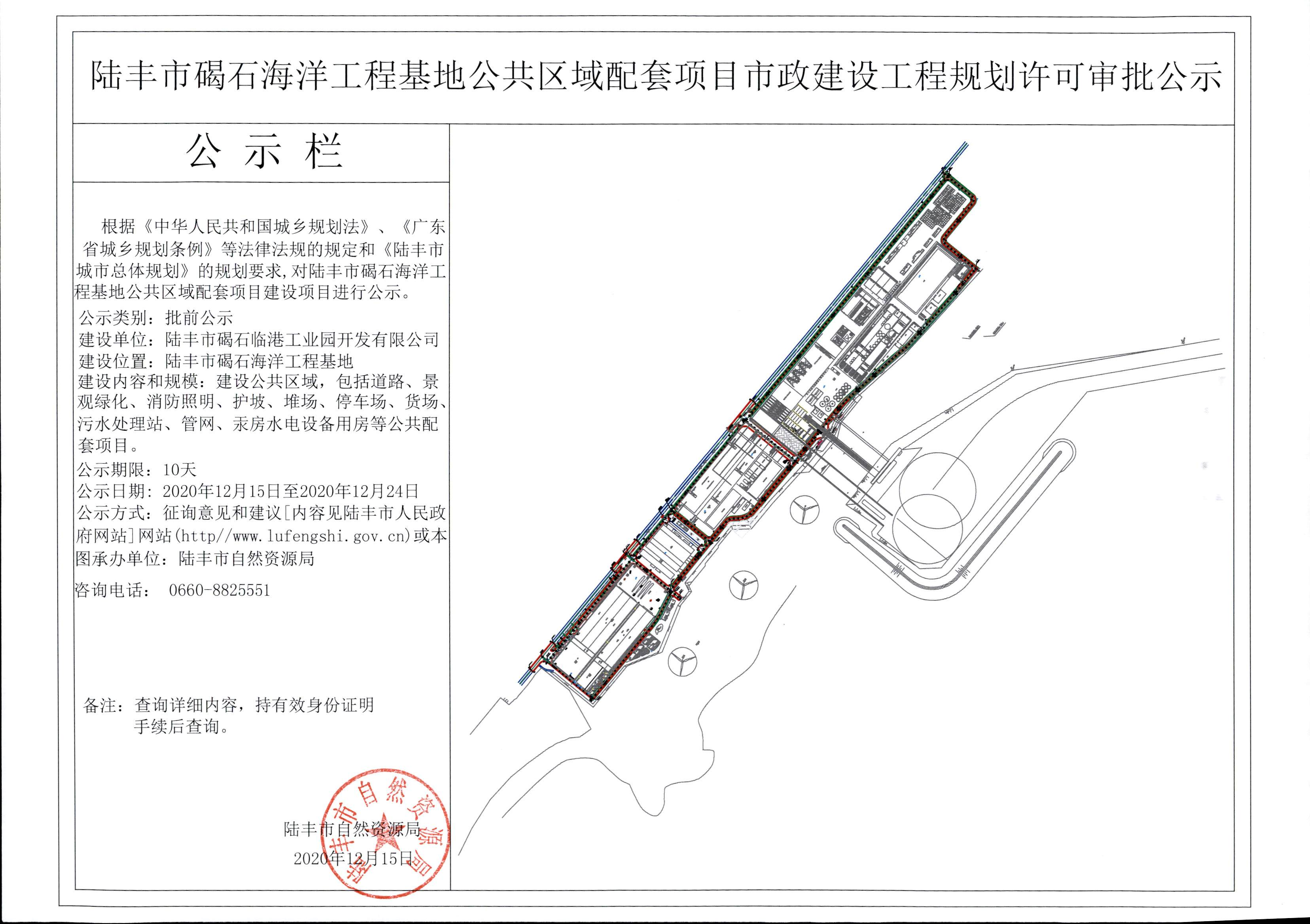 陸豐市碣石海洋工程基地公共區(qū)域配套項目市政建設(shè)工程規(guī)劃許可審批公示