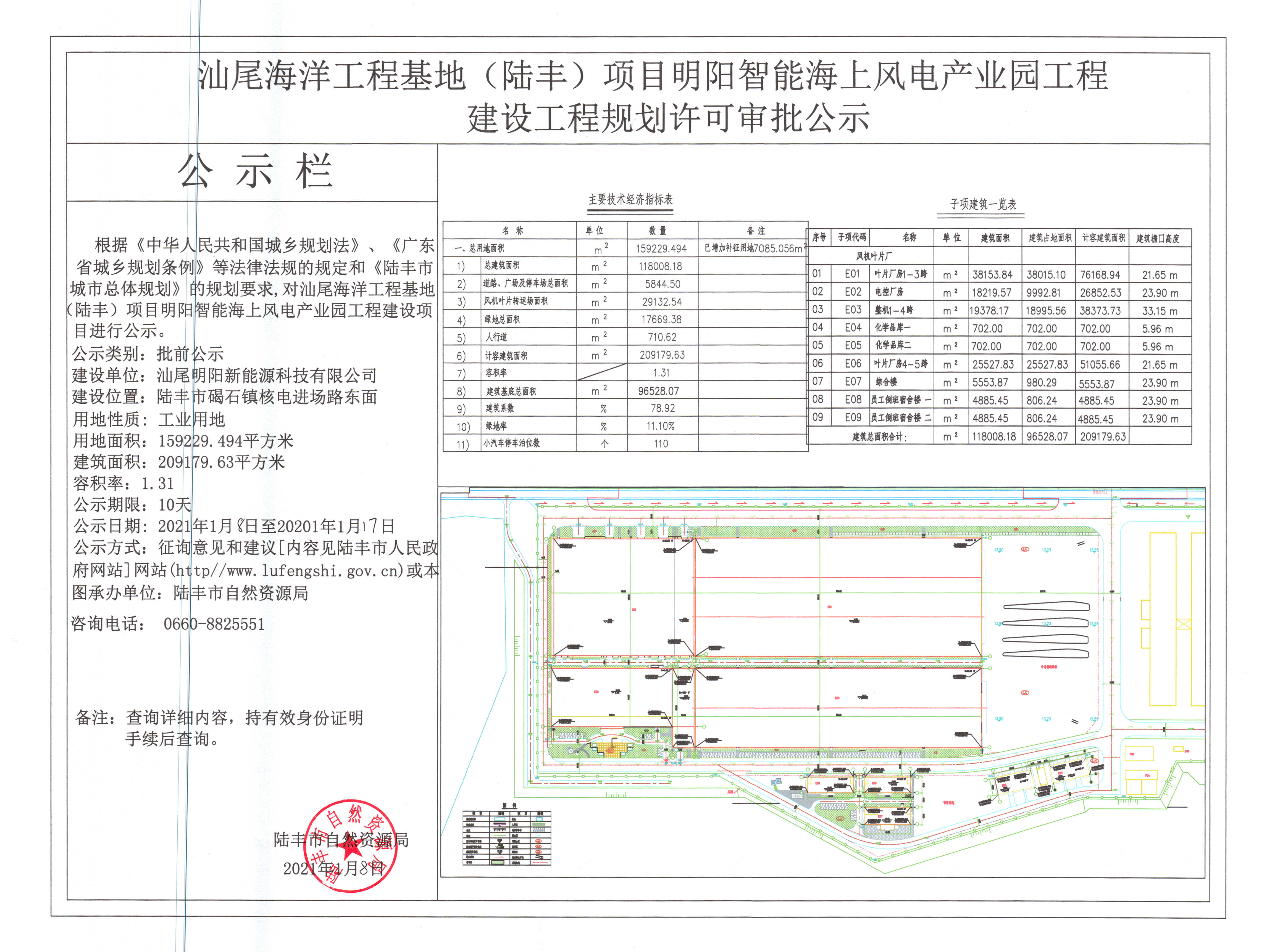 汕尾海洋工程基地(陸豐)項(xiàng)目明陽(yáng)智能海上風(fēng)電產(chǎn)業(yè)園工程建設(shè)工程規(guī)劃許可審批公示
