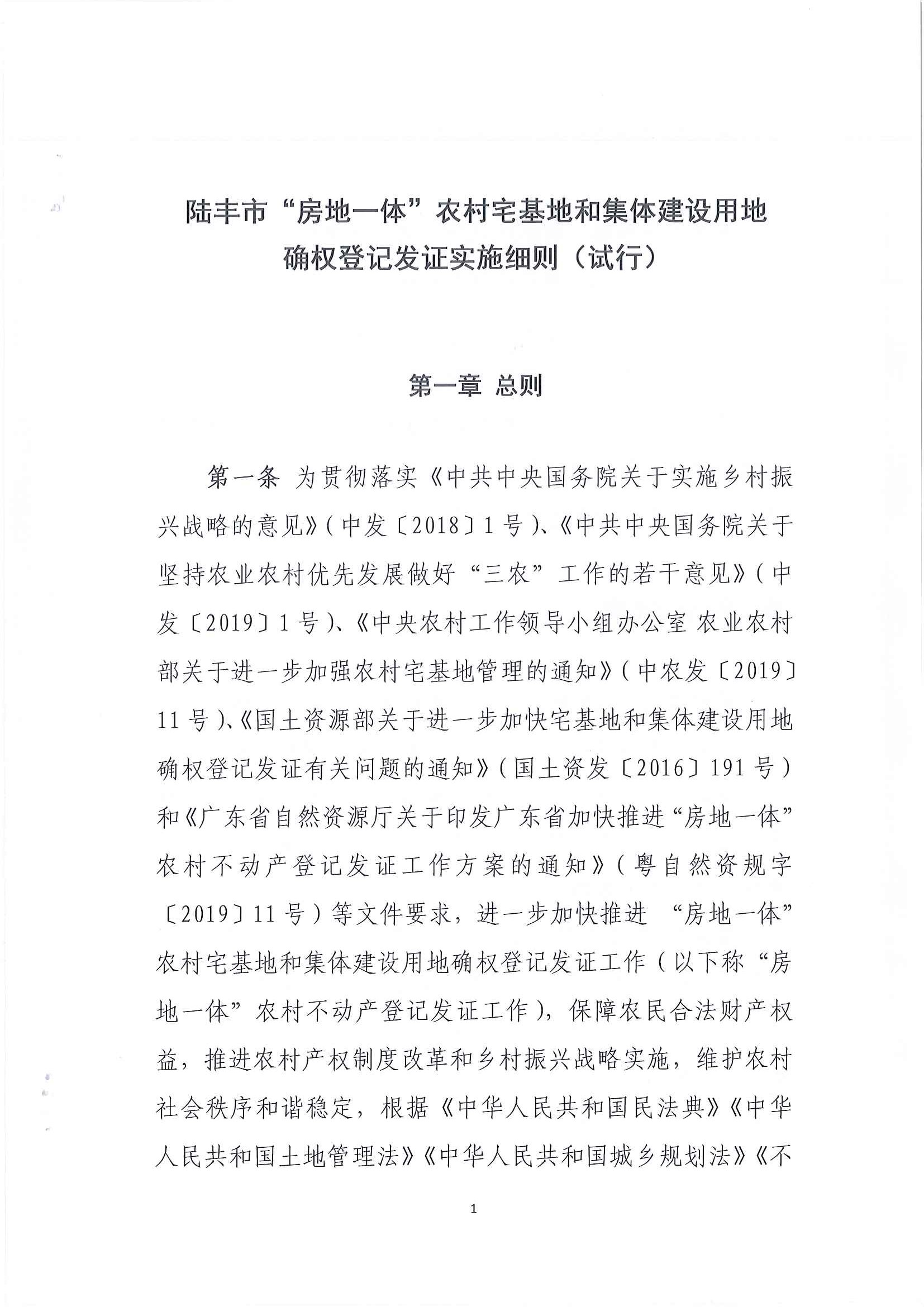 關(guān)于征求《陸豐市“房地一體”農(nóng)村宅基地和集體建設(shè)用地確權(quán)登記發(fā)證實(shí)施細(xì)則(試行)》