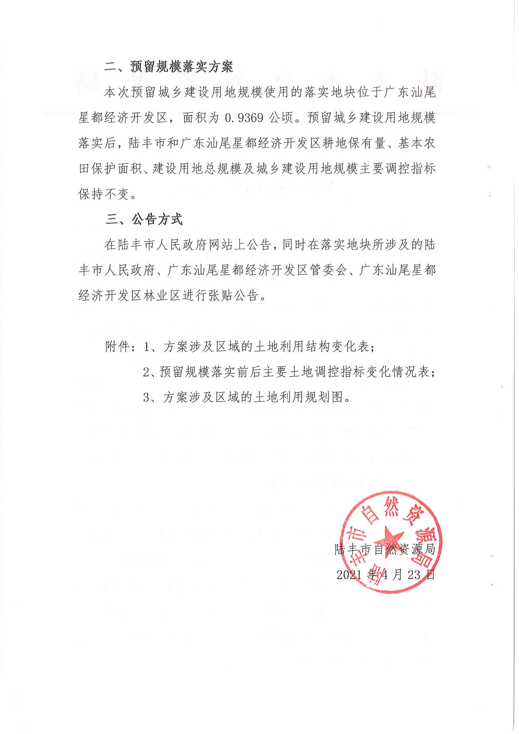 關(guān)于《汕尾市陸豐市預(yù)留城鄉(xiāng)建設(shè)用地規(guī)模使用審批表(陸豐市2019年度第二十三批次城鎮(zhèn)建設(shè)用地)》成果的公告