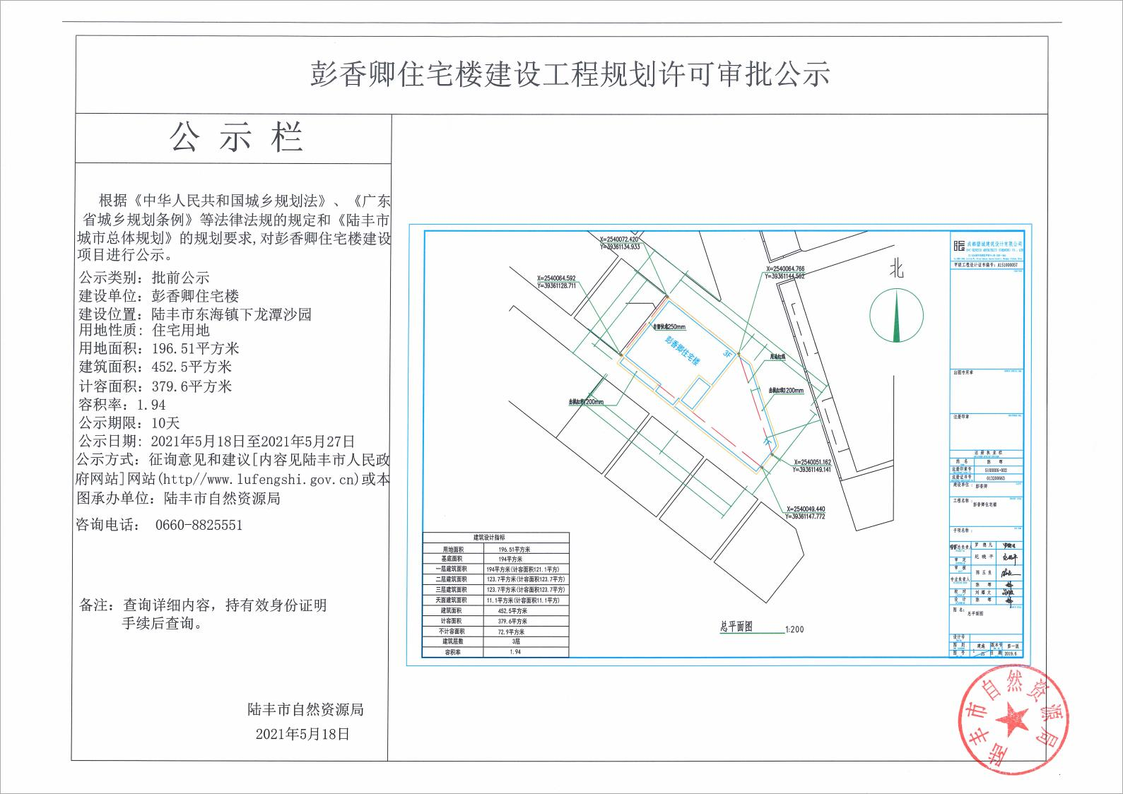 彭香卿住宅樓建設工程規(guī)劃許可審批公示