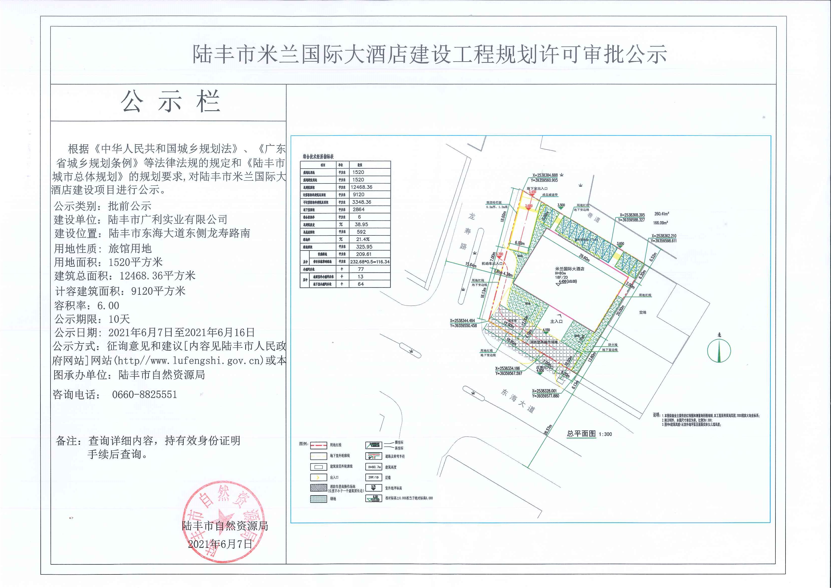 陸豐市米蘭國(guó)際大酒店建設(shè)工程規(guī)劃許可審批公示