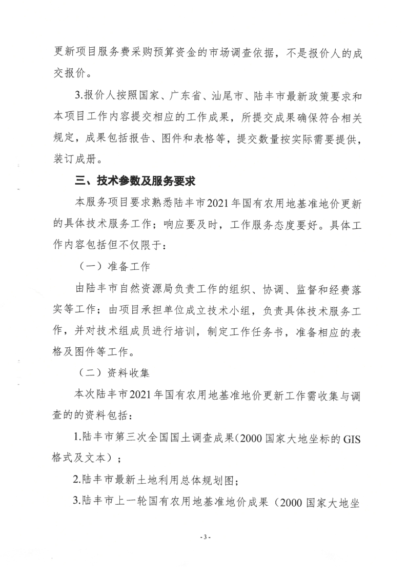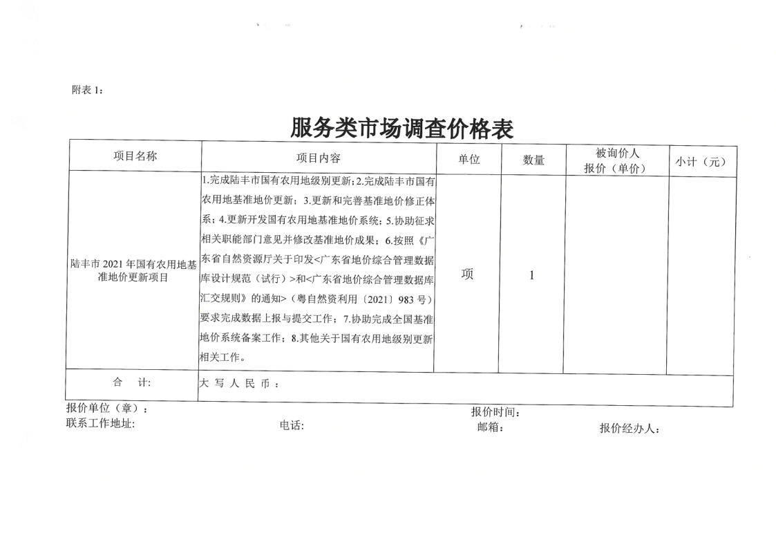 陸豐市2021年度國有農(nóng)用地基準地價更新項目評估服務費市場詢價調(diào)查