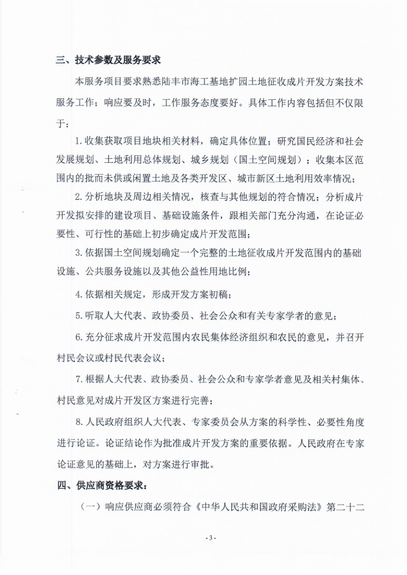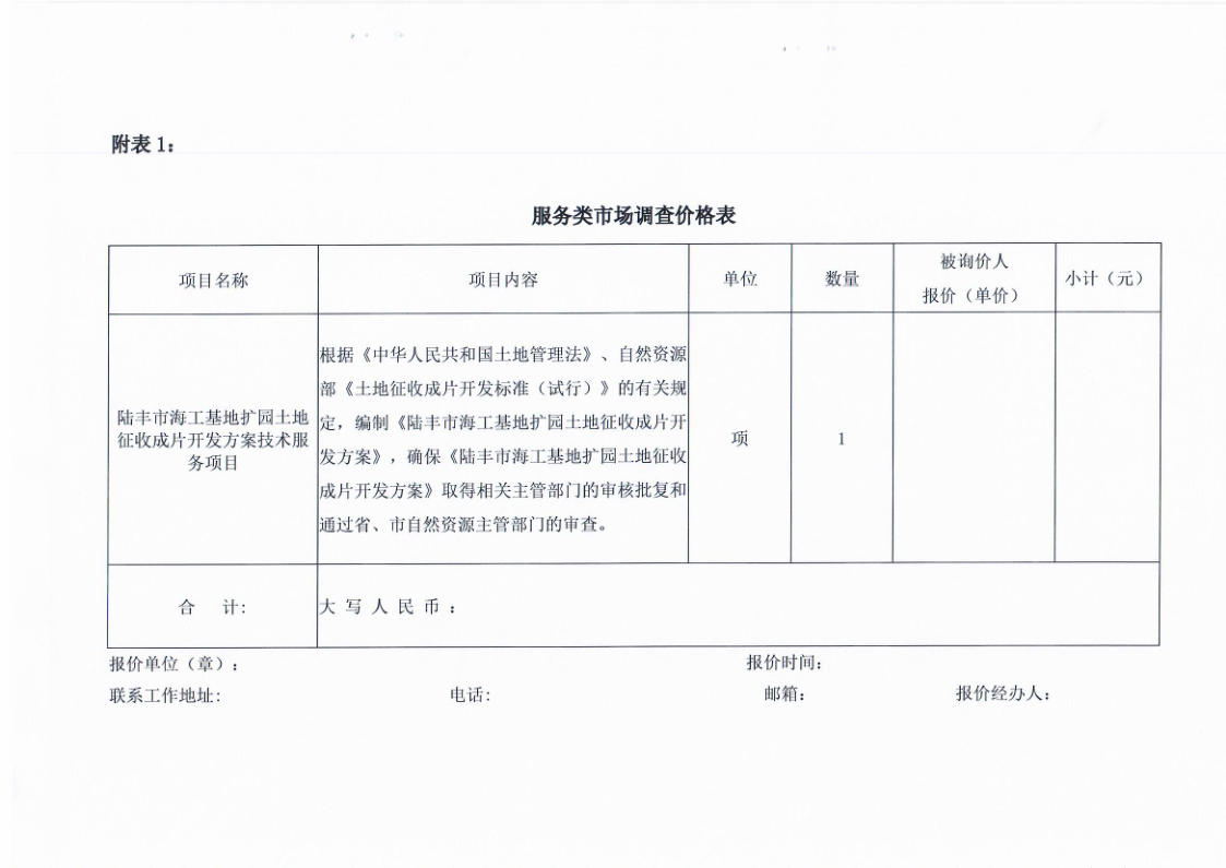 陸豐市海工基地?cái)U(kuò)園土地征收成片開發(fā)方案技術(shù)服務(wù)費(fèi)市場詢價(jià)調(diào)查需求書