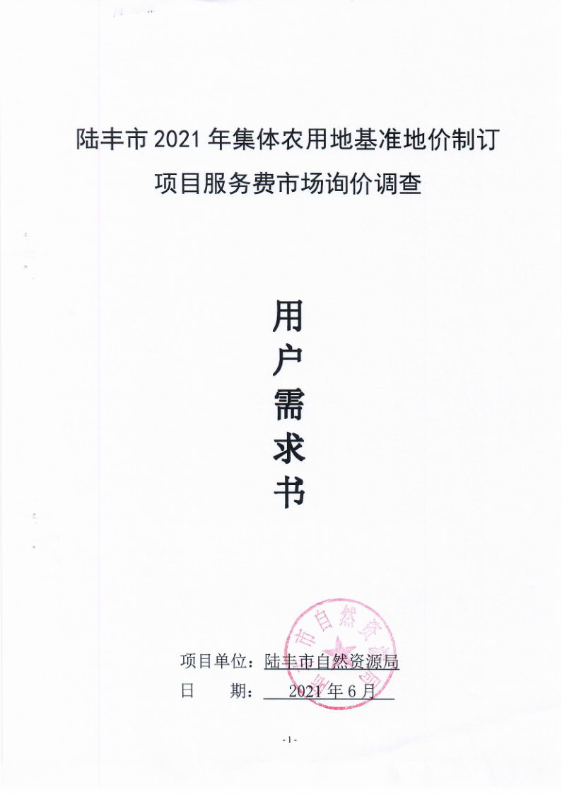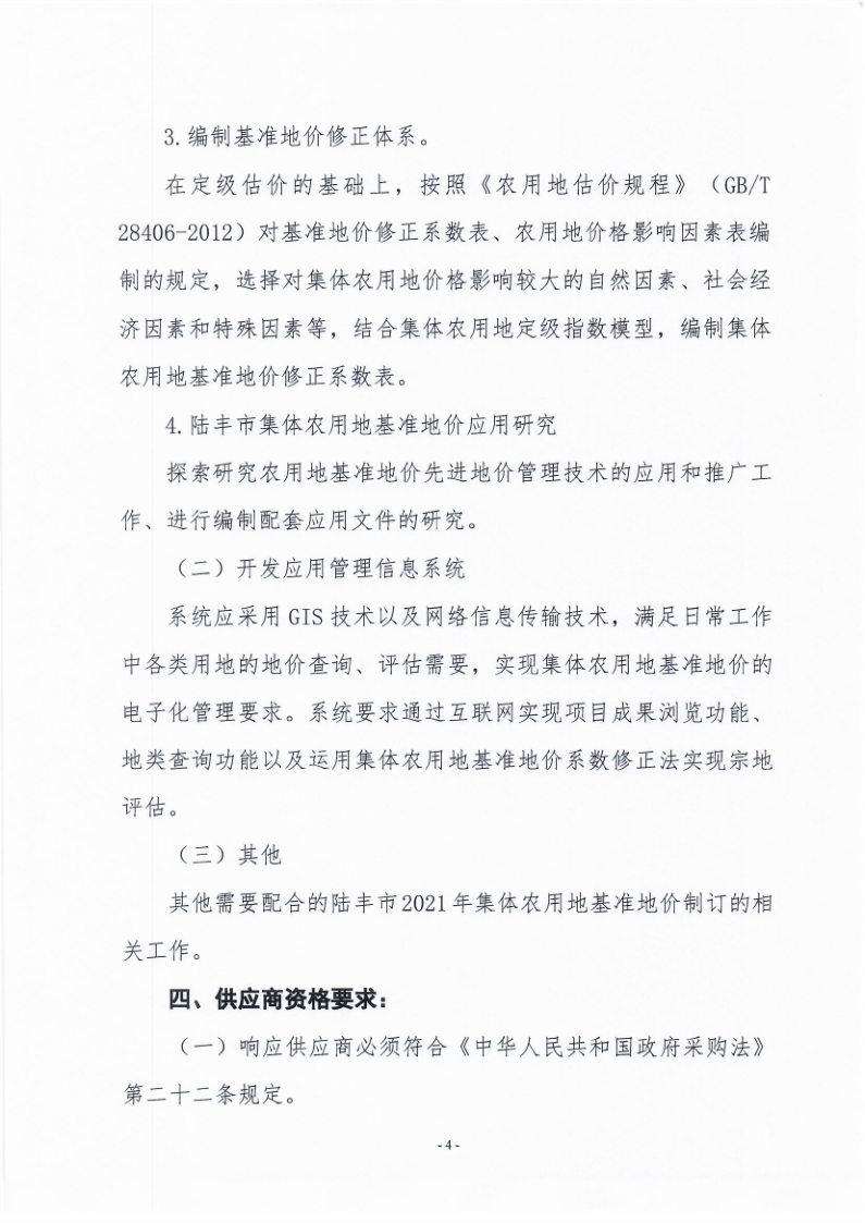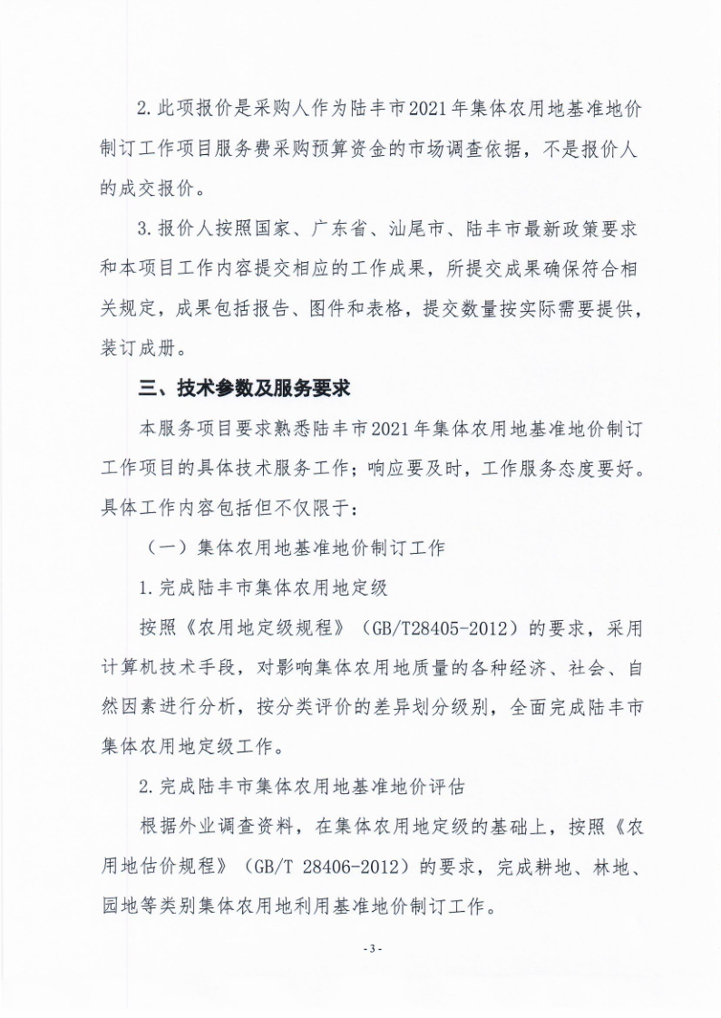 陸豐市2021年集體農用地基準地價制訂項目服務費市場詢價調查