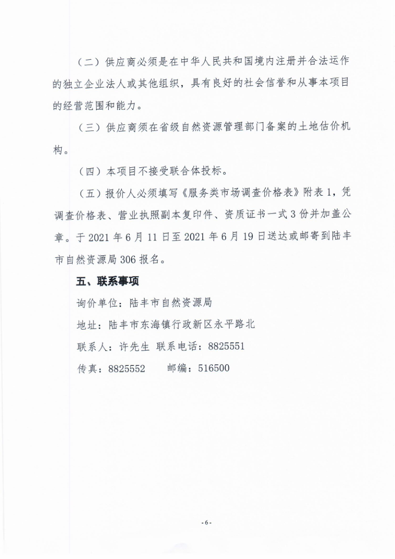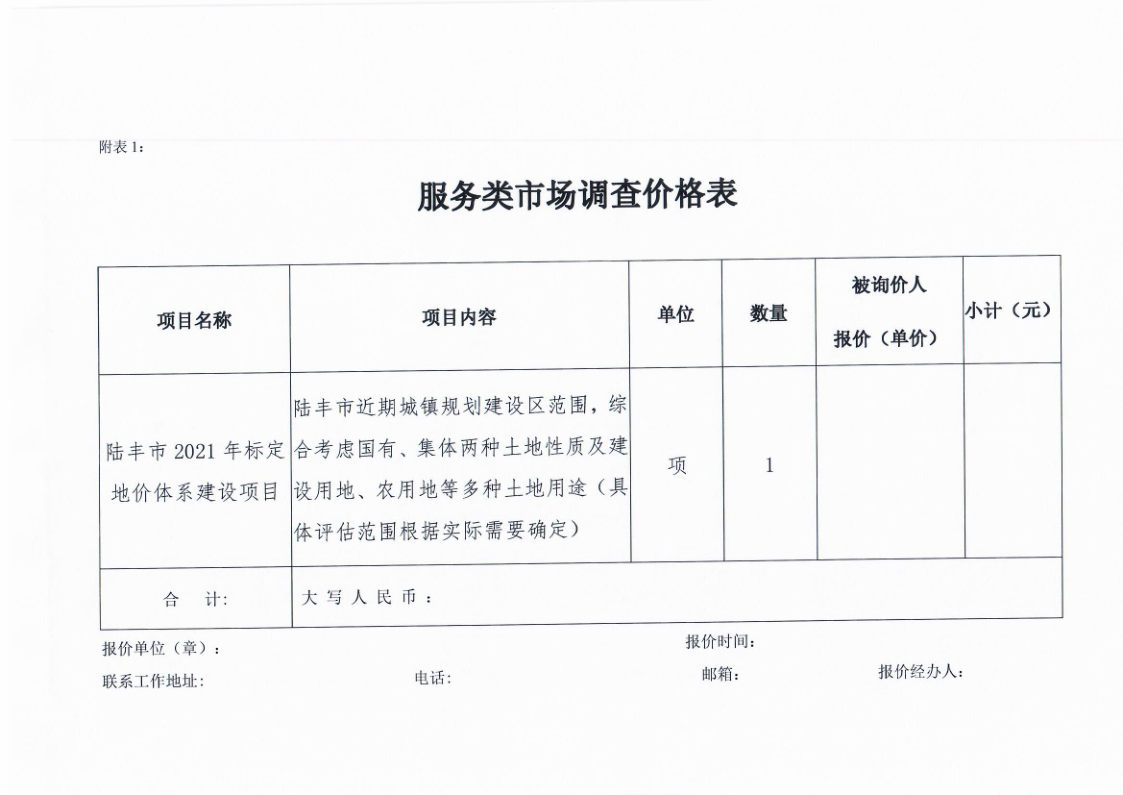 陸豐市2021年標(biāo)定地價(jià)體系建設(shè)項(xiàng)目服務(wù)費(fèi)市場(chǎng)詢(xún)價(jià)調(diào)查