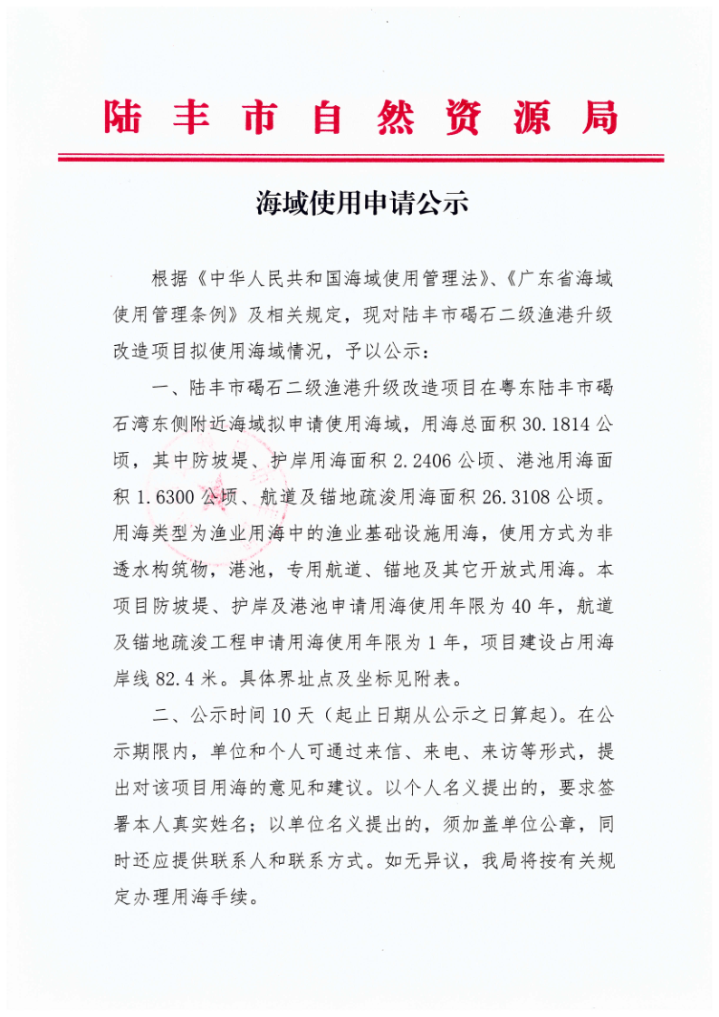 海域使用申請(qǐng)公示