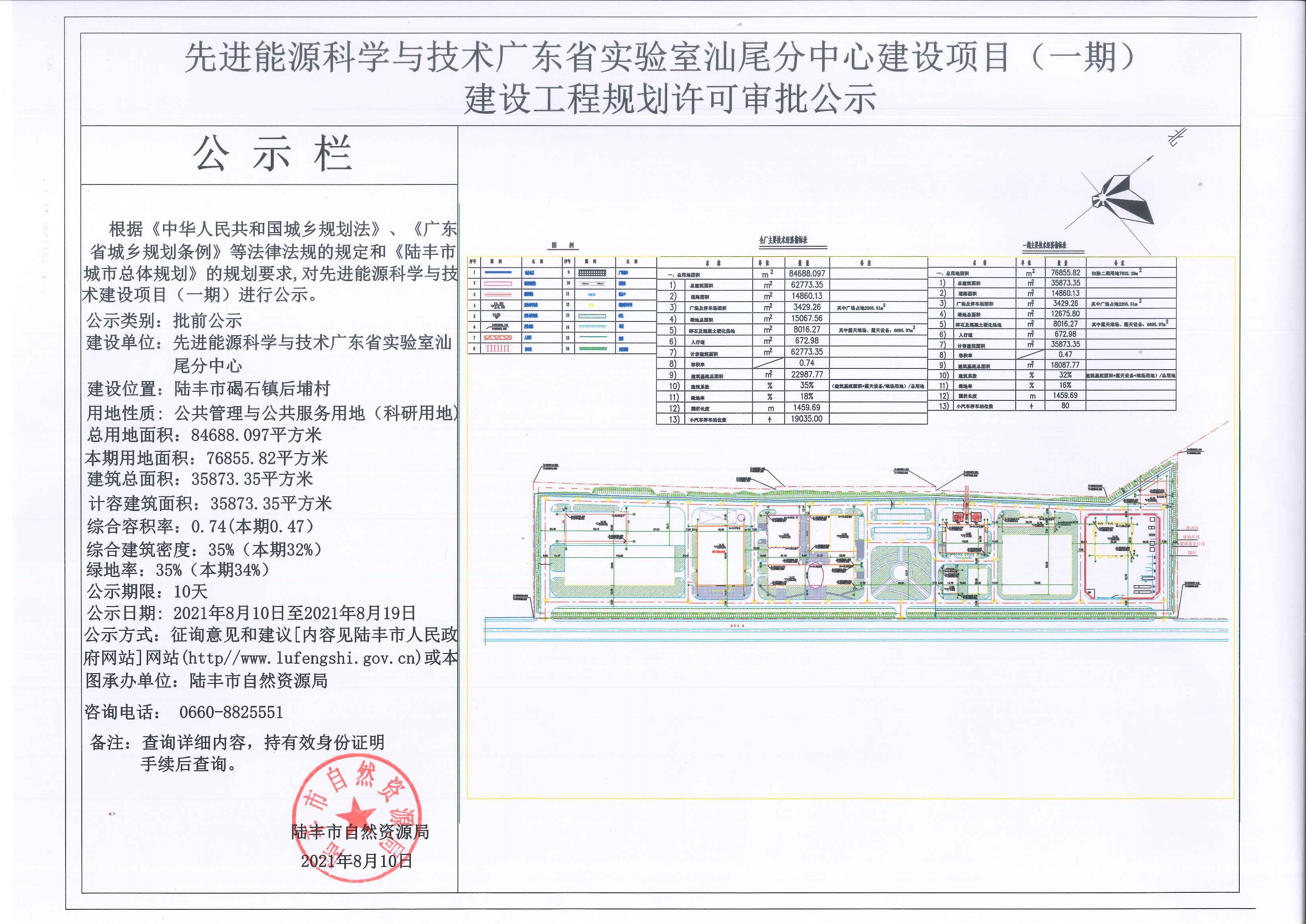 先進(jìn)能源科學(xué)與技術(shù)廣東省實(shí)驗(yàn)室汕尾分中心建設(shè)項(xiàng)目(一期)建設(shè)工程規(guī)劃許可審批公示
