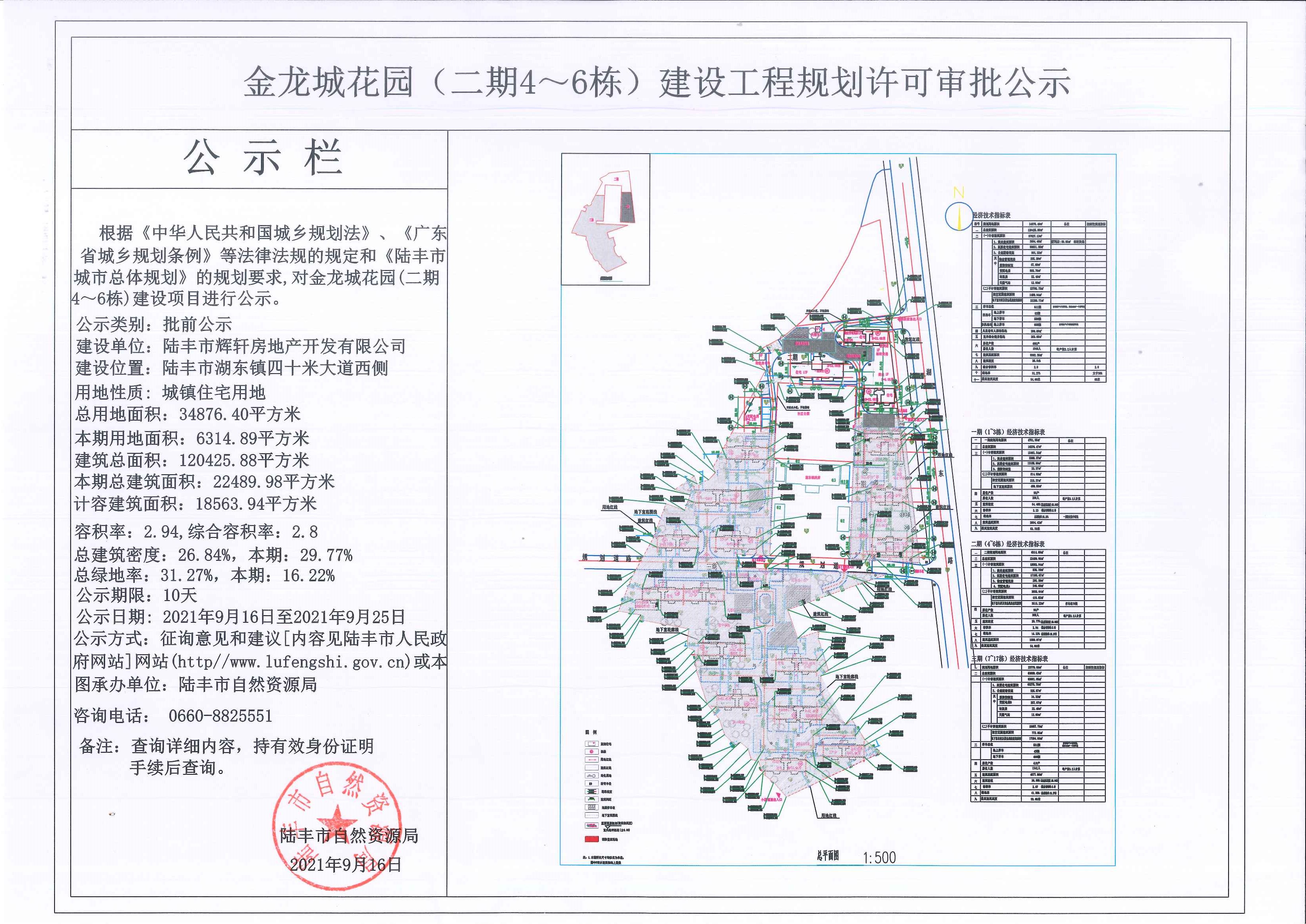 金龍城花園(二期4~6棟)建設(shè)工程規(guī)劃許可審批公示