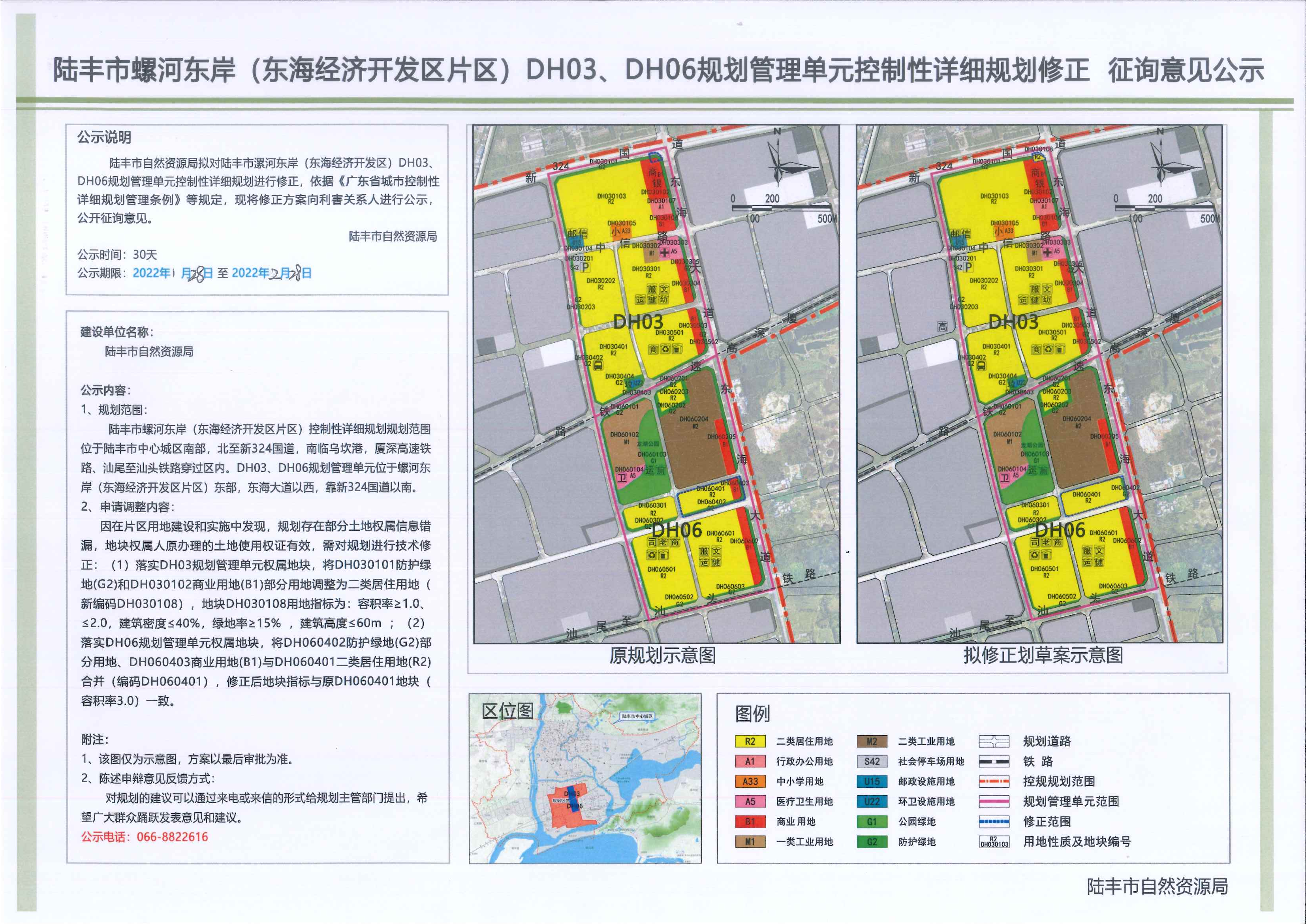 陸豐市螺河?xùn)|岸(東海經(jīng)濟開發(fā)區(qū)片區(qū))DH03、DH06規(guī)劃管理單元控制性詳細(xì)規(guī)劃修正 征詢意見公示