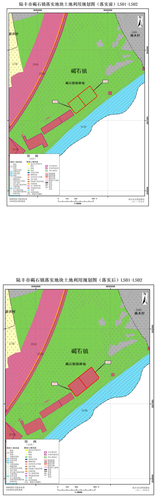 預(yù)留規(guī)模落實前后土地利用規(guī)劃圖