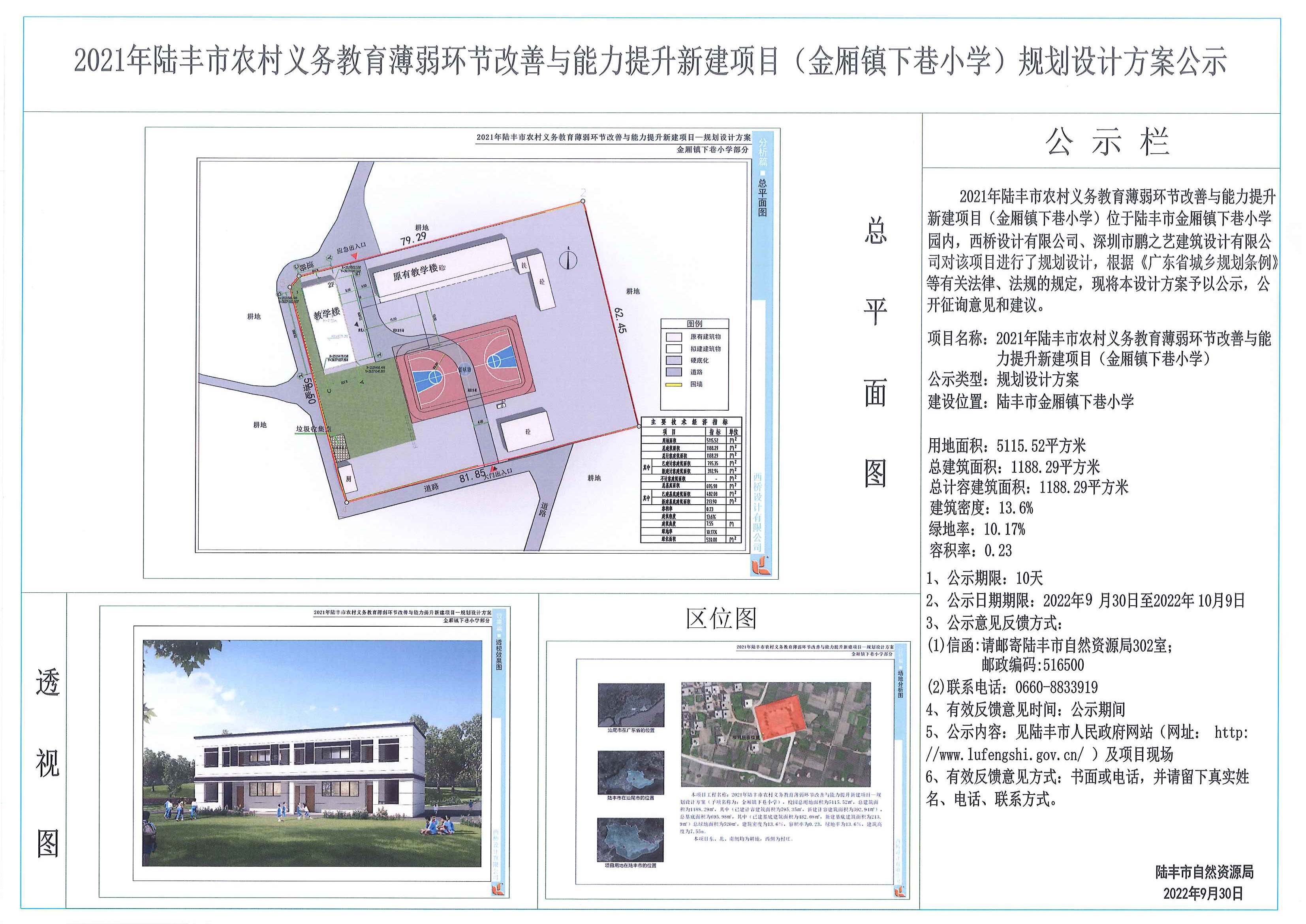 2021年陸豐市農(nóng)村義務(wù)教育薄弱環(huán)節(jié)改善與能力提升新建項目(金廂鎮(zhèn)下巷小學(xué))規(guī)劃設(shè)計方案公示