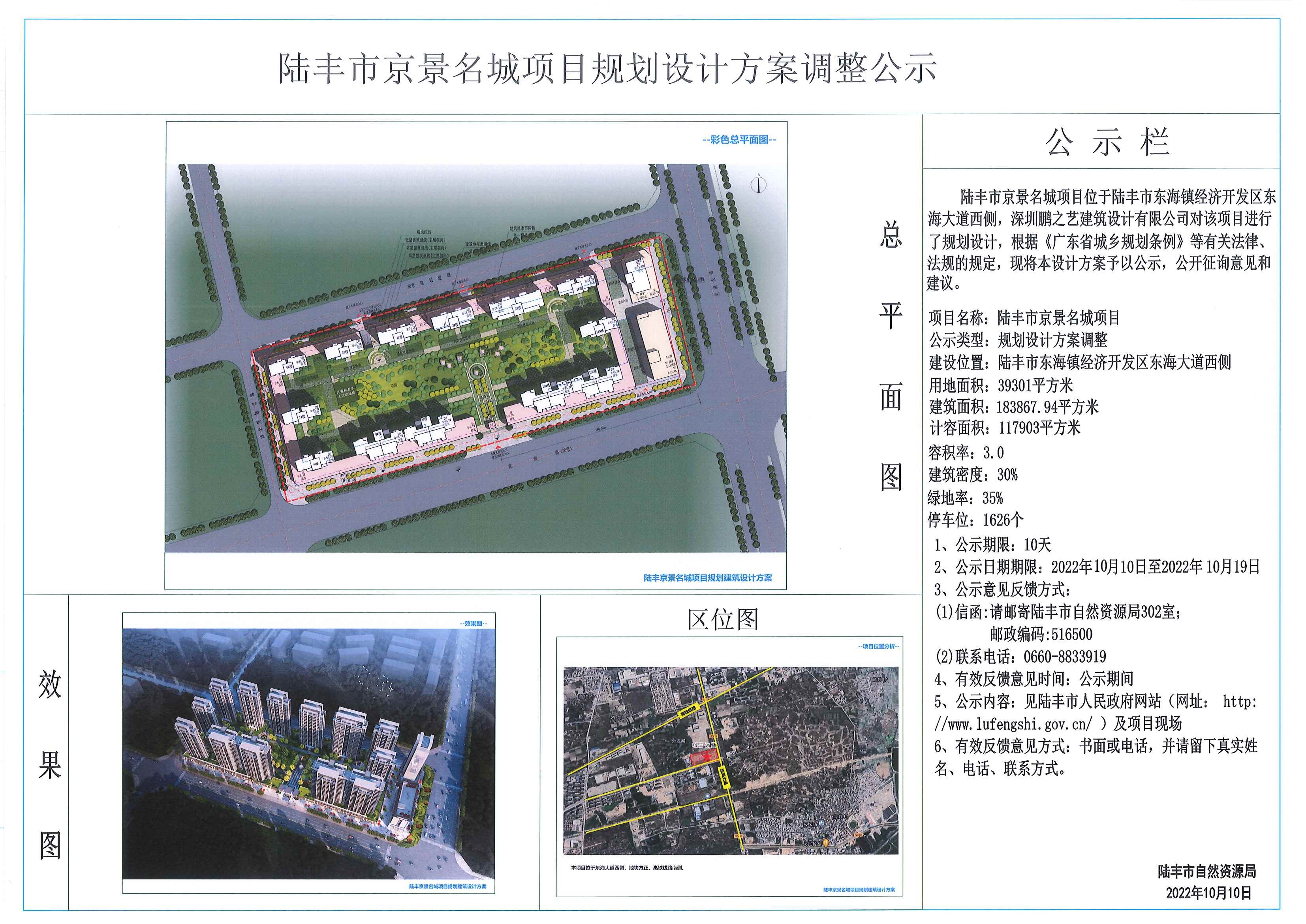 陸豐市京景名城項目規(guī)劃設(shè)計方案調(diào)整公示