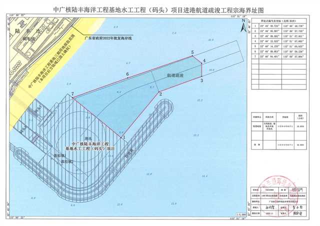 根據(jù)《中華人民共和國海域使用管理法》、《廣東省海域使用管理條例》及相關(guān)規(guī)定,現(xiàn)對中廣核陸豐海洋工程基地水工工程(碼頭)項目進港航道疏浚工程擬使用海域情況,予以公示: