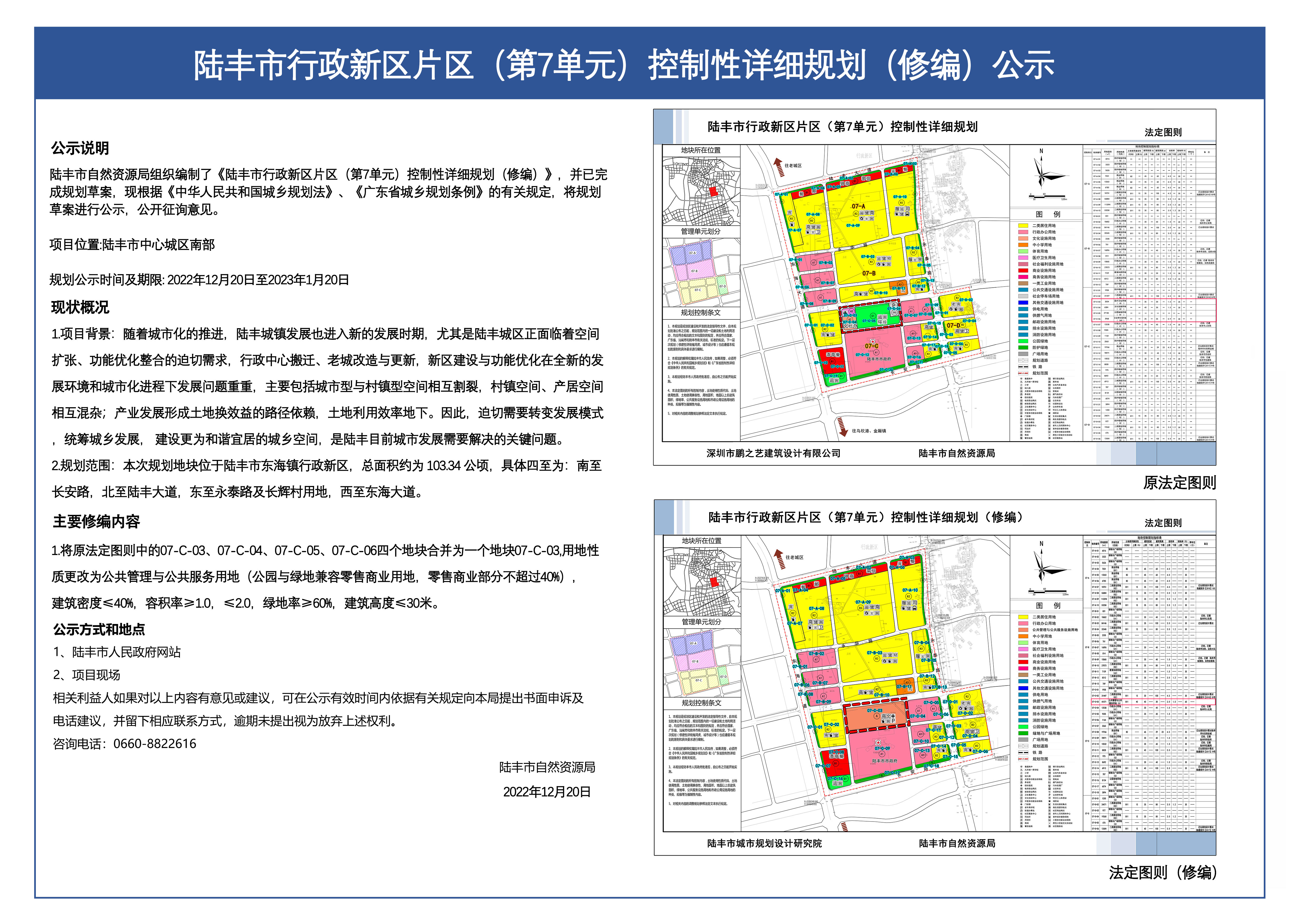 陸豐市行政新區(qū)片區(qū) (第7單元) 控制性詳細規(guī)劃(修編)公示