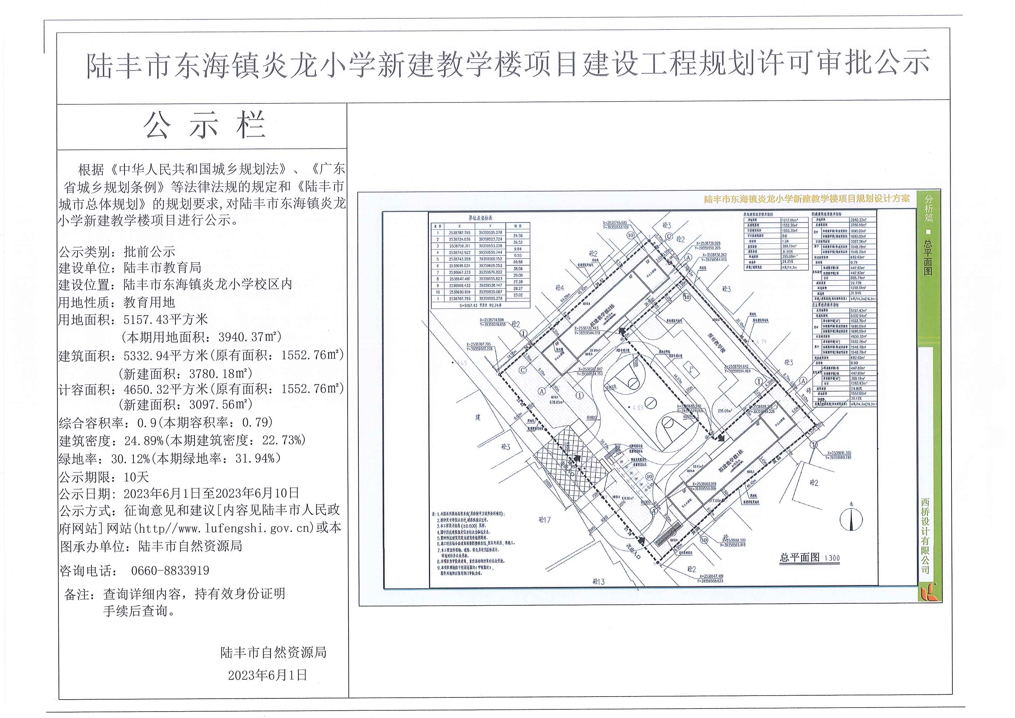 陸豐市東海鎮(zhèn)炎龍小學(xué)新建教學(xué)樓項(xiàng)目建設(shè)工程規(guī)劃許可審批公示