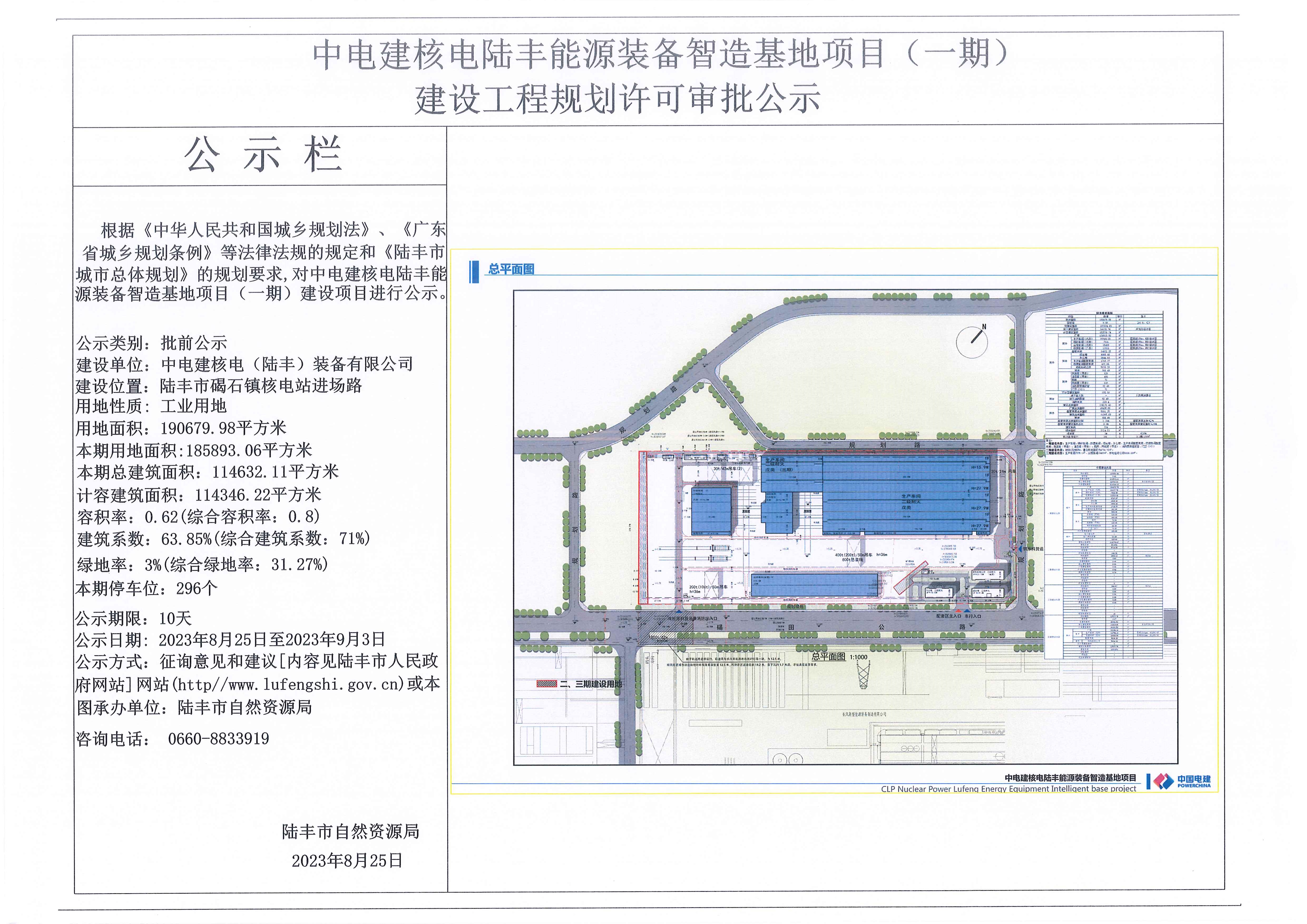 中電建核電陸豐能源裝備智造基地項(xiàng)目(一期)建設(shè)工程規(guī)劃許可審批公示
