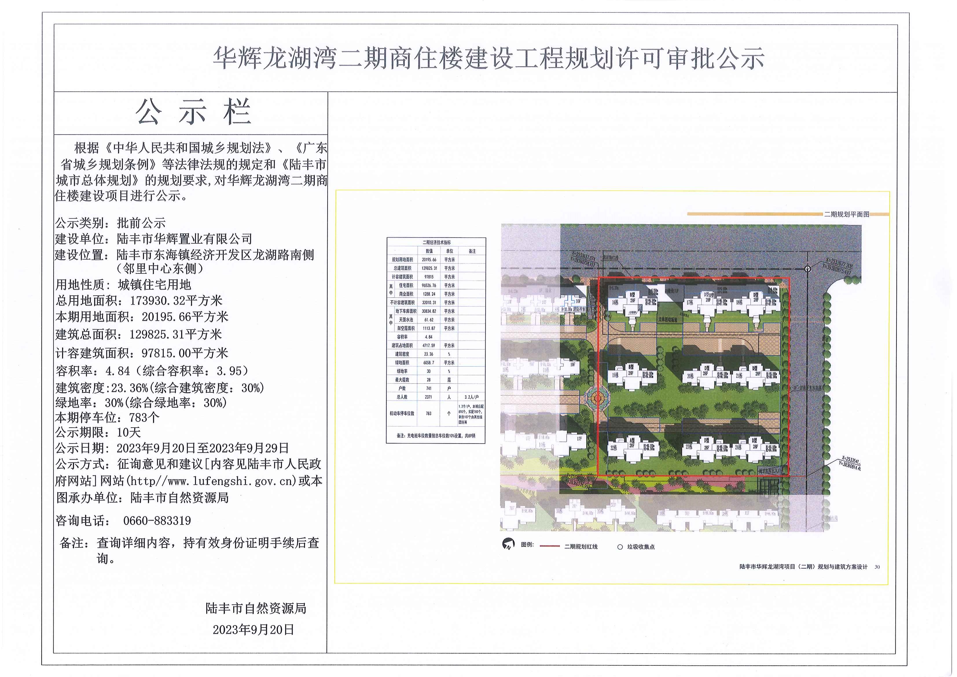 華輝龍湖灣二期商住樓建設(shè)工程規(guī)劃許可審批公示