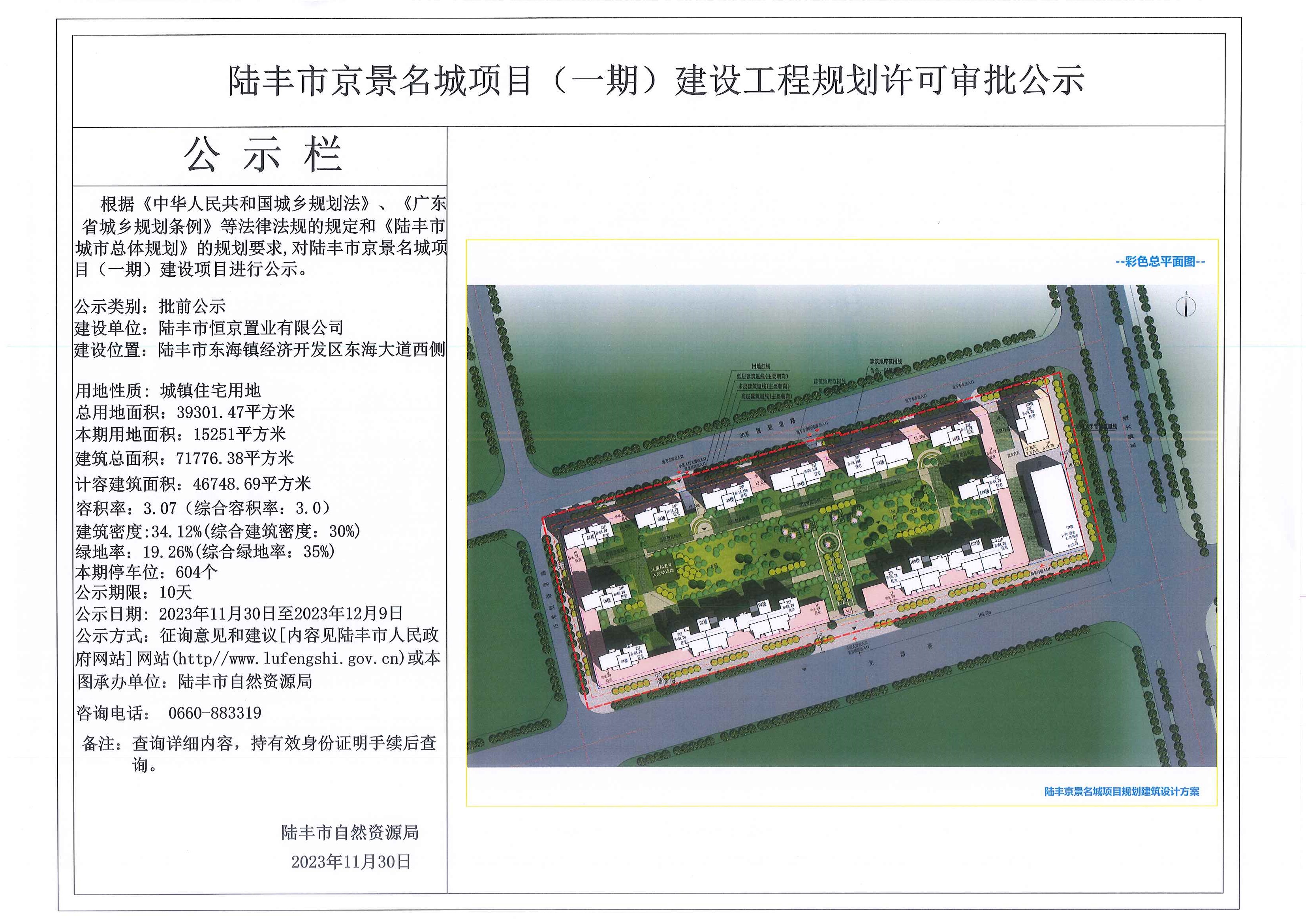 陸豐市京景名城項(xiàng)目(一期) 建設(shè)工程規(guī)劃許可審批公示