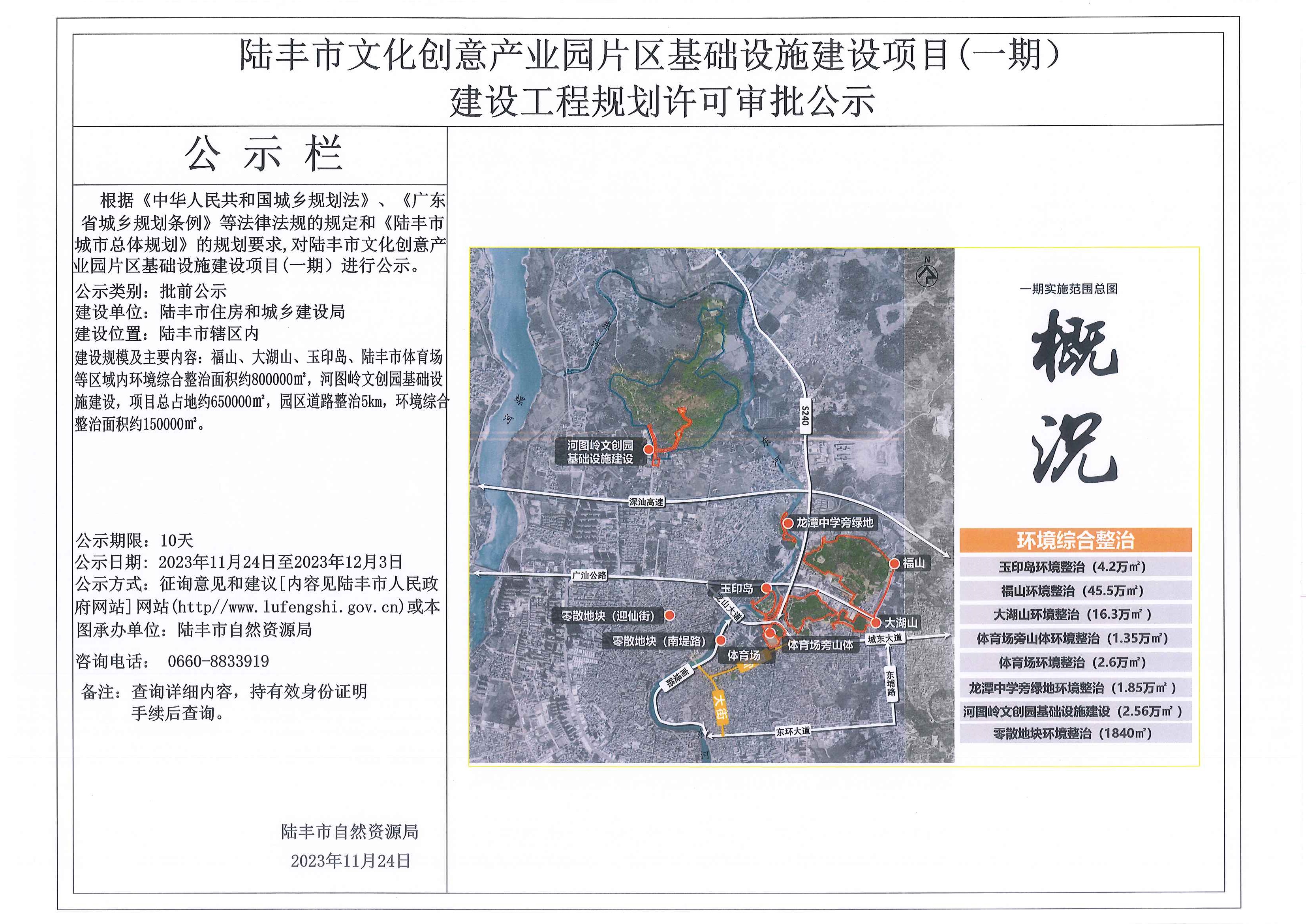 陸豐市文化創(chuàng)意產(chǎn)業(yè)園片區(qū)基礎(chǔ)設(shè)施建設(shè)項(xiàng)目(一期)建設(shè)工程規(guī)劃許可審批公示