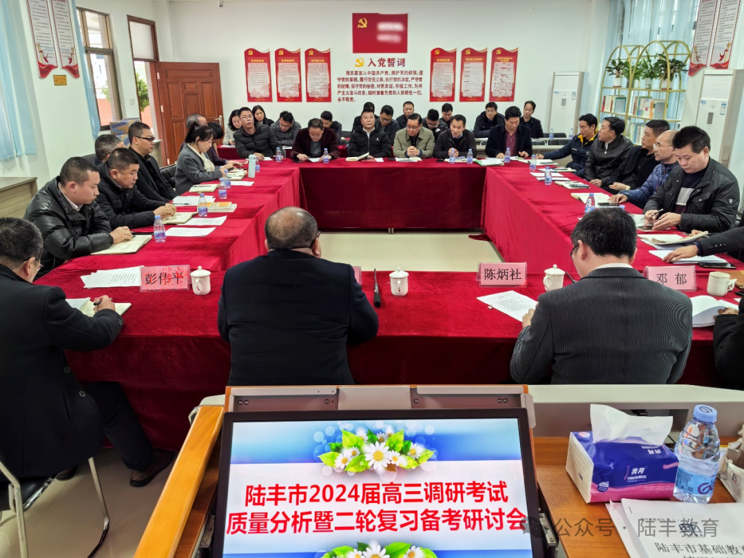 1月27日,陸豐市2024屆高三調(diào)研考試質(zhì)量分析暨二輪復(fù)習(xí)備考研討會(huì)在市教師發(fā)展中心召開。汕尾市教育局黨組成員、副局長(zhǎng)陳炳社,市教育局黨組書記、局長(zhǎng)陳少游出席研討會(huì)并講話。會(huì)議由市教育局黨組成員、市教師發(fā)展中心主任鄧郁主持。全市 10 所高中學(xué)校(輔導(dǎo)中心)校長(zhǎng)、業(yè)務(wù)副校長(zhǎng)和高三年級(jí)級(jí)長(zhǎng),市教師發(fā)展中心教科研部高中學(xué)科教研員參加研討會(huì)。